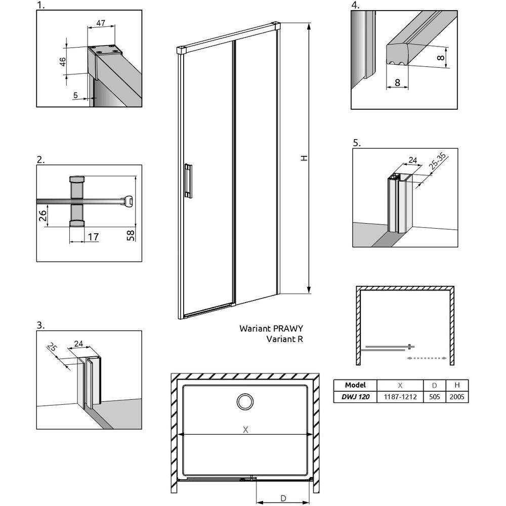 Установку душевой двери Radaway Idea Black DWJ 120 R следует доверить профессионалу, чтобы обеспечить идеальную посадку и функциональность. Продукт разработан для универсальной установки и подойдет как для монтажа на пол, так и на поддон. Регулируемые профили позволяют точно настроить ширину двери, обеспечивая превосходную адаптацию к размеру вашей ванной комнаты. Не забывайте, что для поддержания безупречного вида стекла достаточно периодически протирать его мягкой тканью благодаря покрытию Easy Clean.