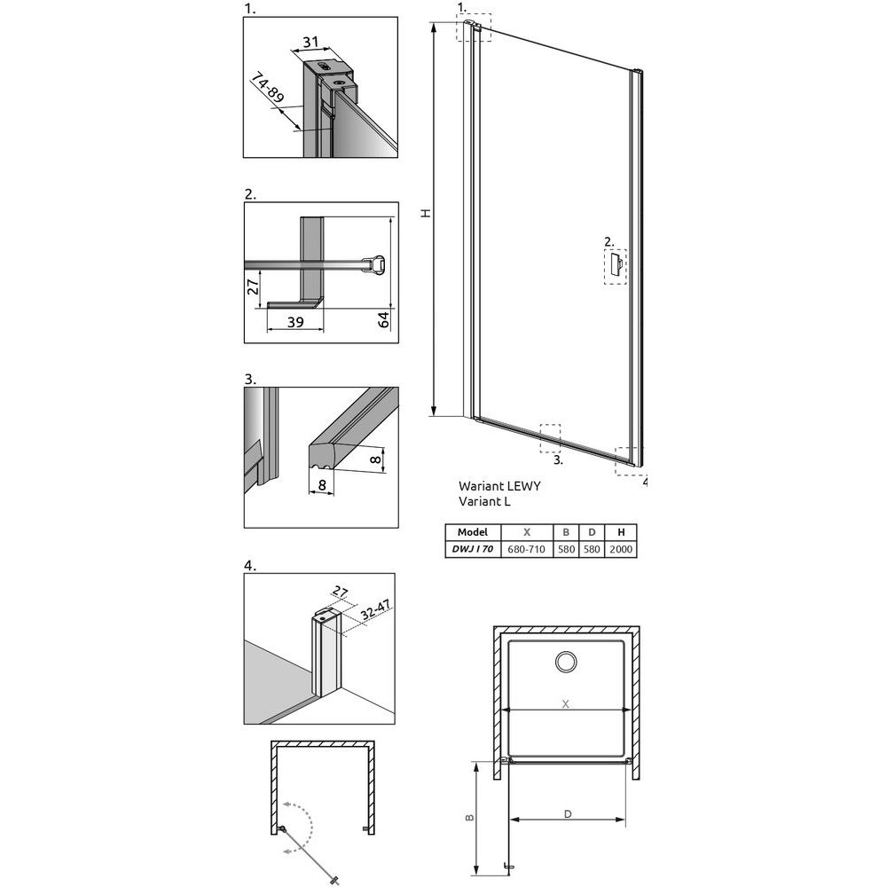 Душевая дверь Radaway Nes Black DWJ I 70 L имеет высоту 200 см и ширину 70 см, с регулировкой для более точной установки. Она поддерживает напольный монтаж и установку на поддон, обеспечивая гибкость в выборе решения. Система распашных дверей позволяет открыть их как внутрь, так и наружу, предоставляя удобство в эксплуатации и ширину входа 58 см. Прозрачное полотно и левая конфигурация делают её универсальной деталью любого интерьера.