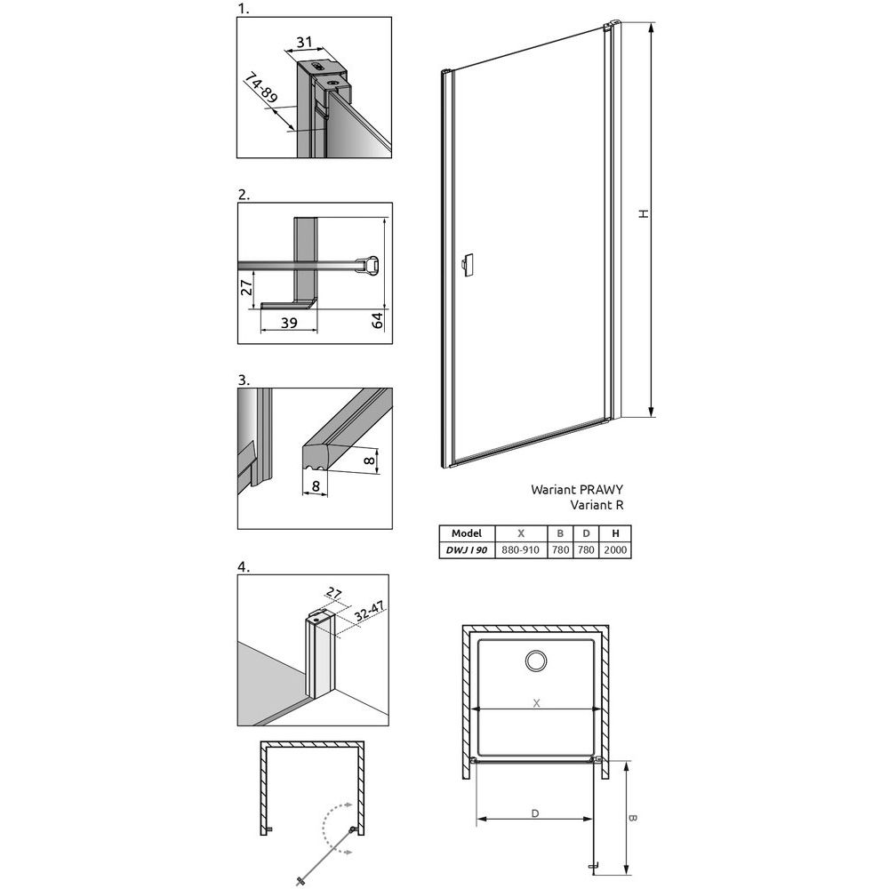 Душевая дверь предназначена для правой установки, а её ширина может регулироваться на несколько сантиметров, что позволяет адаптировать конструкцию под особенности вашей ванной ниши. Благодаря своему современному дизайну и высококачественным материалам, она станет украшением любого интерьера, обеспечивая при этом долгие годы надёжной службы.