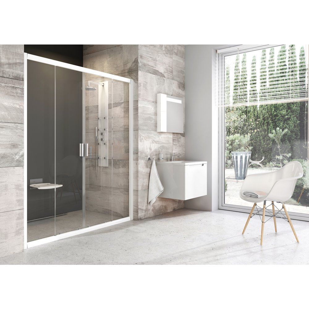 Эта душевая дверь имеет габариты 160x190 см и может устанавливаться как на пол, так и на поддон. Раздвижные двери с прозрачным полотном обеспечивают ширину входа в 69.3 см. Ширина конструкции регулируется на несколько сантиметров, позволяя подогнать её под особенности помещения. Алюминиевый профиль с матовой поверхностью добавляет изделию износостойкость и привлекательный внешний вид, а покрытие «антикапля» значительно упрощает уход за стеклом.