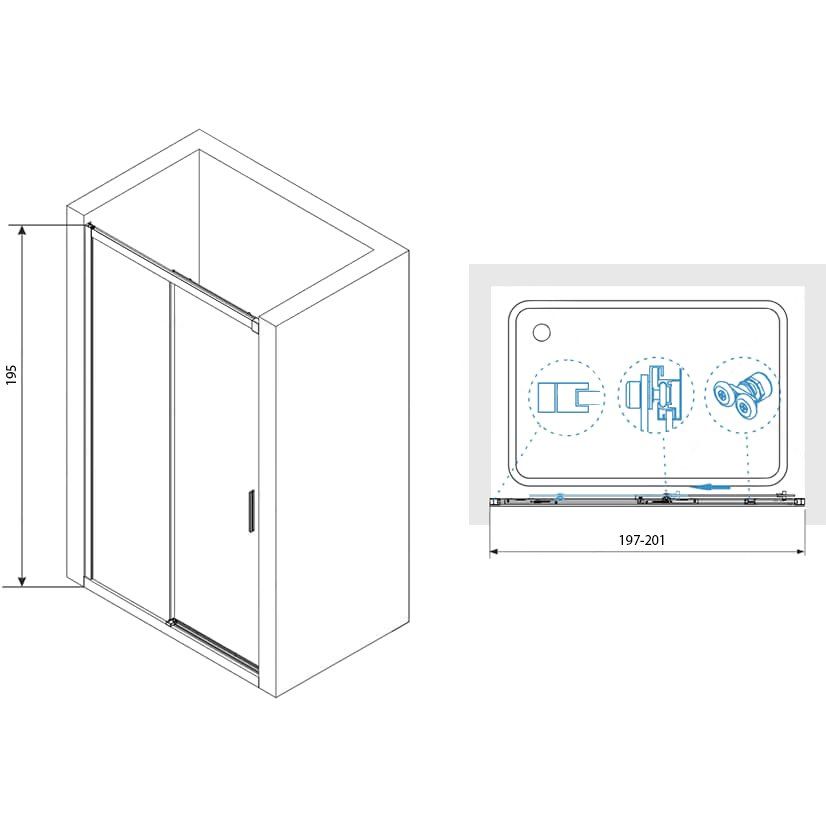 Душевая дверь RGW Leipzig Le-12 имеет размеры 200x195 см, что позволяет использовать её в большинстве стандартных ниши. Раздвижная система дверей помогает эффективно экономить пространство ванной комнаты, а также проста в установке и эксплуатации. Благодаря регулируемой ширине от 197 до 201 см, дверь идеально подстраивается под нужды каждого пользователя. Вход шириной 90.2 см обеспечивает удобство и комфорт использования. Дверное полотно толщиной 6 мм выполнено из безопасного стекла, а хромированный алюминиевый профиль добавляет изысканности общему виду.