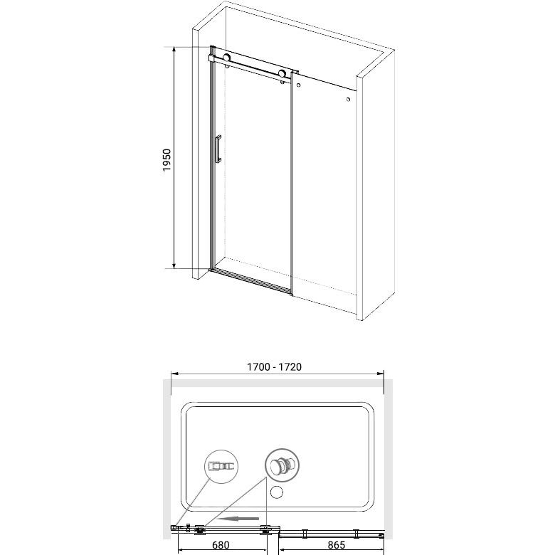 Размеры душевой двери составляют 170 на 195 см, что позволяет создать комфортную и просторную зону для принятия душа. Прозрачное стеклянное полотно толщиной 8 мм обеспечивает прочность и безопасность. Данная модель подходит как для напольного монтажа, так и для установки на поддон. Алюминиевый профиль с глянцевой поверхностью дополнительно устойчив к износу и предотвращает коррозию, что делает изделие идеальным выбором для влажной среды в ванной комнате.