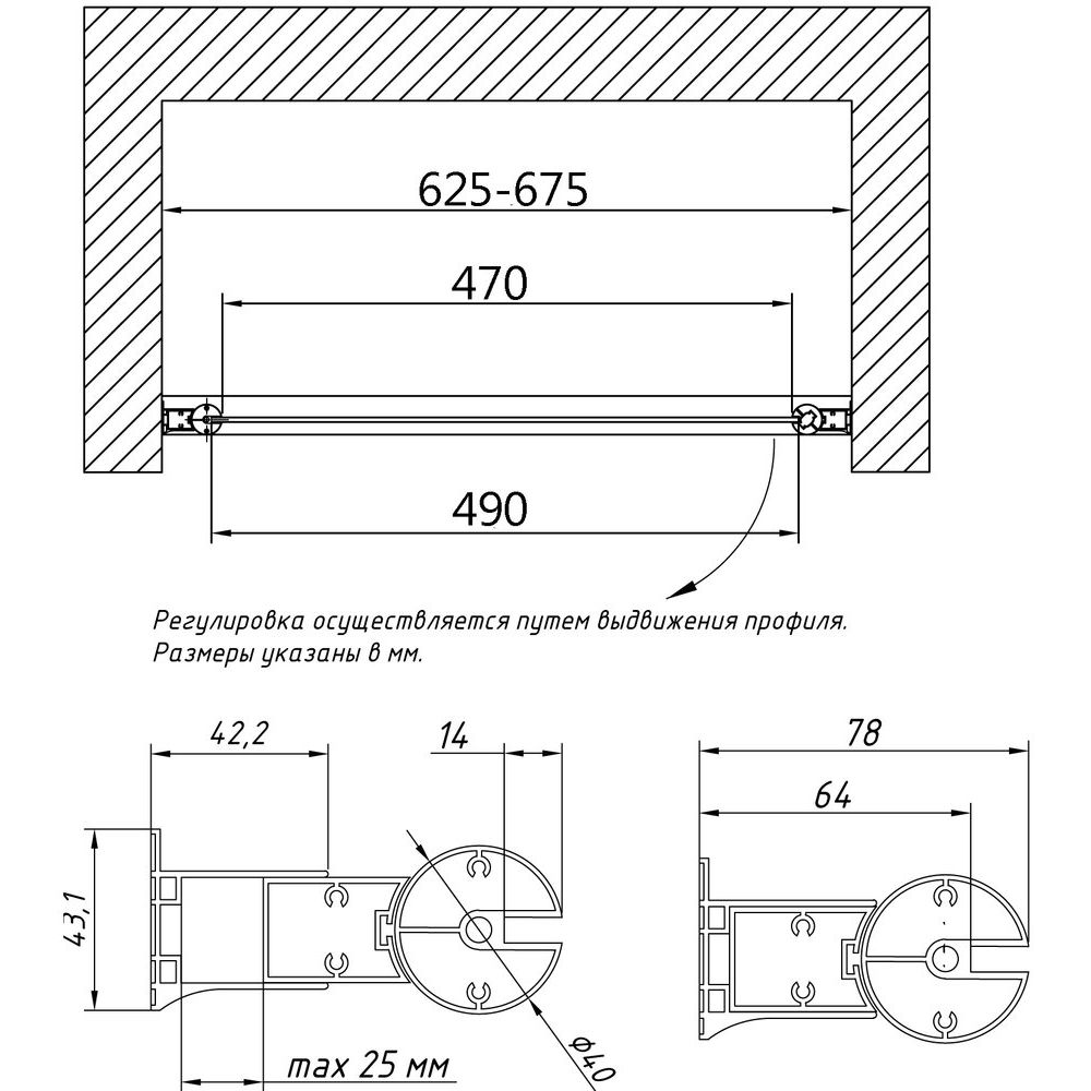 - Распашная система дверей с регулировкой ширины, что подходит для ниш различной ширины.