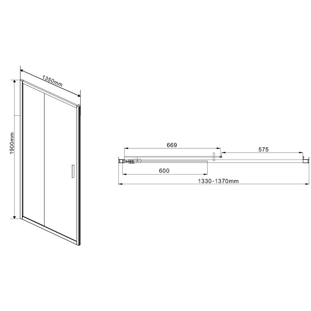 Эта душевая дверь имеет размеры 135x190 см, что подходит для большинства стандартных ниш. Раздвижная система дверей позволяет использовать всю ширину входа в 57.5 см. Полотно дверей толщиной 6 мм поддерживается глянцевым алюминиевым профилем, который не только отлично выглядит, но и устойчив к коррозии. Продукт поставляется из Италии и защищён трехлетней гарантией.