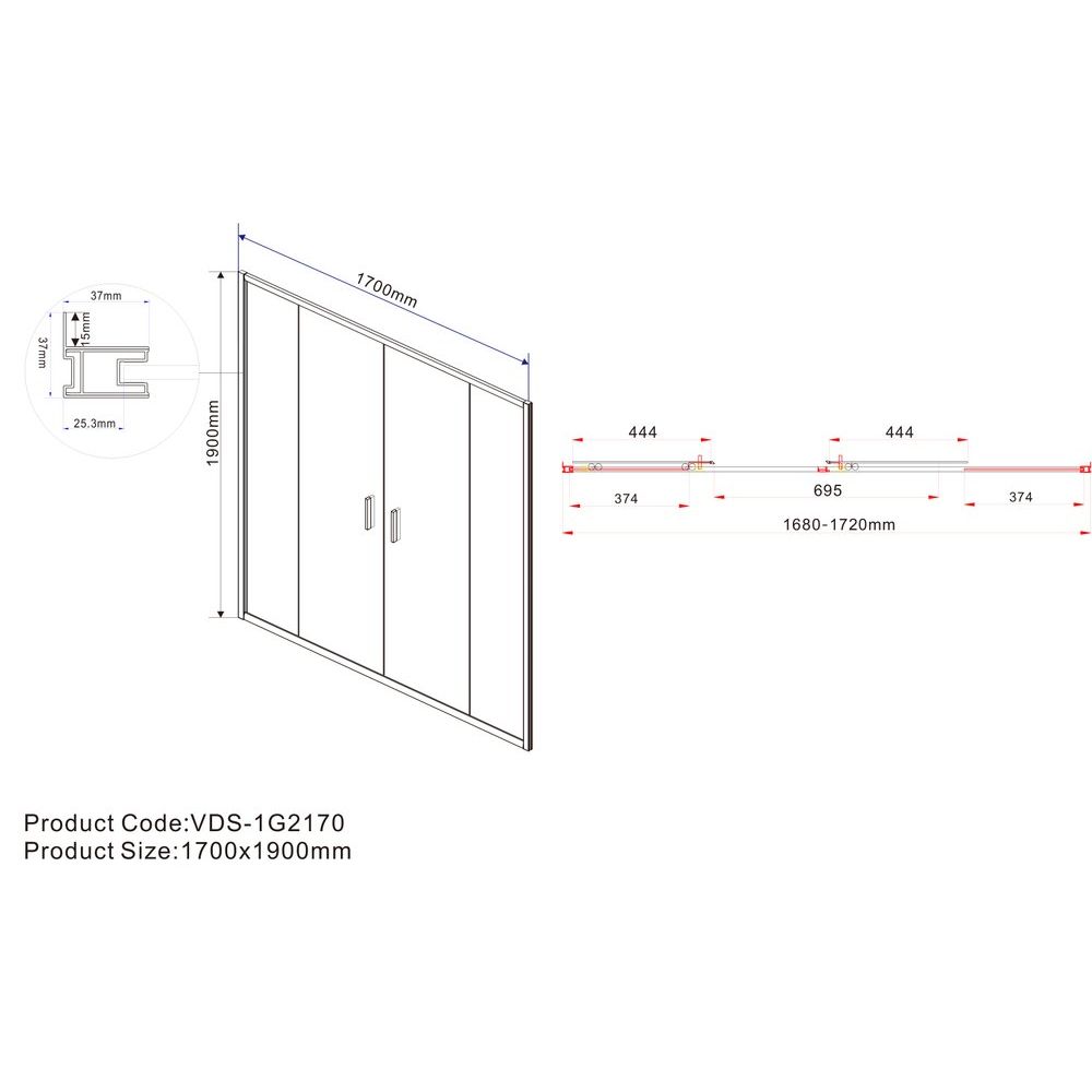 Эта душевая дверь измеряет 170 см в ширину и 190 см в высоту, предлагая оптимальную защиту от воды благодаря раздвижной системе. Она оснащена прозрачным полотном из 6 мм закаленного стекла, что подчеркивает современный стиль и обеспечивает визуальную лёгкость конструкции. Ширина входа составляет 69.5 см, что достаточно для комфортного пользования. Универсальная ориентация позволяет монтировать дверь как с левой, так и с правой стороны, в зависимости от вашей ванной комнаты. Модель подходит для напольного монтажа или установки на поддон и, благодаря 3-летней гарантии, обеспечивает долгосрочную защиту ваших инвестиций.