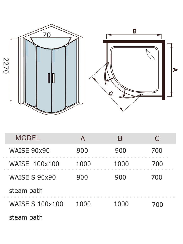 Weltwasser WAISE размером 90х90х220 сантиметров – довольно популярная и востребованная среди потребителей душевая кабина. Изготавливается конструкция в Германии, оснащается обширным функционалом, необходимыми для комфортного приёма водных процедур опциями. Монтируется кабина бессиликоновым методом, оборудована мраморным поддоном, закаленными стеклами толщиной 8 мм, выдерживающими температурные перепады, механические воздействия. Распашная дверь довольно герметична за счет использования специальных магнитных уплотнителей. Для облегчения доступа к коммуникациям задняя стенка кабины открывается. Данной модели присущ набор следующих функций: хромо-, озонотерапия, радио, вентиляционная система, Bluetooth, ручной и верхний душ с аэрацией. Управлять необходимой функцией можно при помощи сенсорного ПУ.