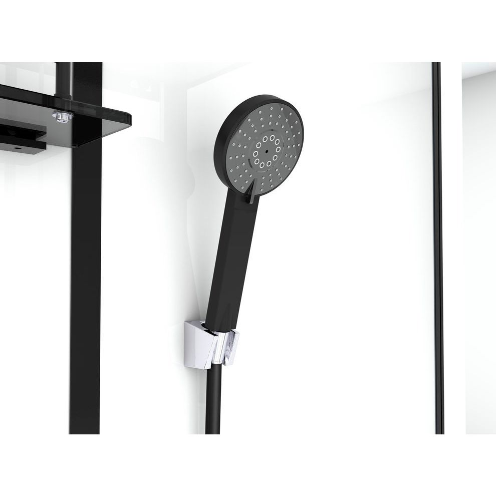 - Оснащение: встроенный тропический душ в крыше, ручная лейка с функцией массажа, 100 форсунок для гидромассажа спины.