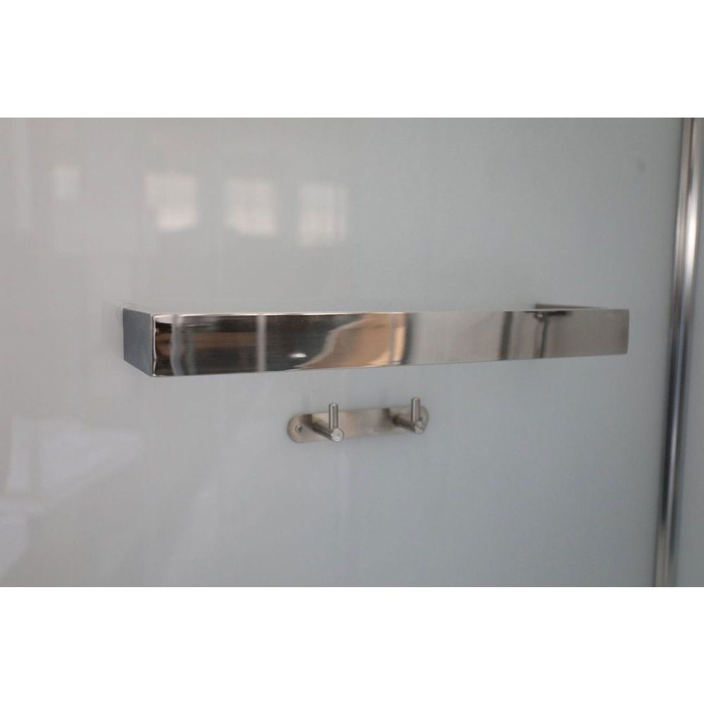- Ультрабелое закаленное стекло и хромированный профиль — стиль и прочность.