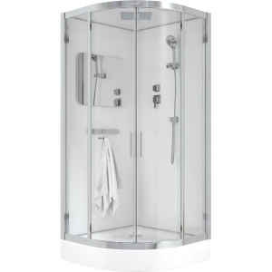 Душевая кабина Ceruttispa Viva 91 имеет размер 90x90 см и оснащена крышей и стенками из прочного закаленного стекла. Верхний душ встроен в крышу, что обеспечивает равномерное распределение воды. Раздвижные двери выполнены из прозрачного стекла и обеспечивают вход шириной 56 см. Также предусмотрены зеркало и полка для дополнительных удобств. Небольшая глубина поддона в 3 см выполнена из АБС-пластика с антискользящим покрытием, а встроенный сифоном, крючки и душевой гарнитур делают её функциональной. Гарантийный срок составляет 1 год.