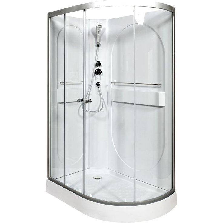 Душевая кабина имеет размеры 120x80 см и оборудована раздвижной системой дверей с прозрачными стеклянными полотнами. Ширина входа составляет 59 см, что обеспечивает легкий доступ. Акриловый поддон снабжен антискользящим покрытием и имеет глубину 3 см для дополнительного комфорта и безопасности. Дополнительные удобства включают в себя полку, сифонт, полотенцедержатель и душевой гарнитур. При покупке предоставляется гарантия 1 год.