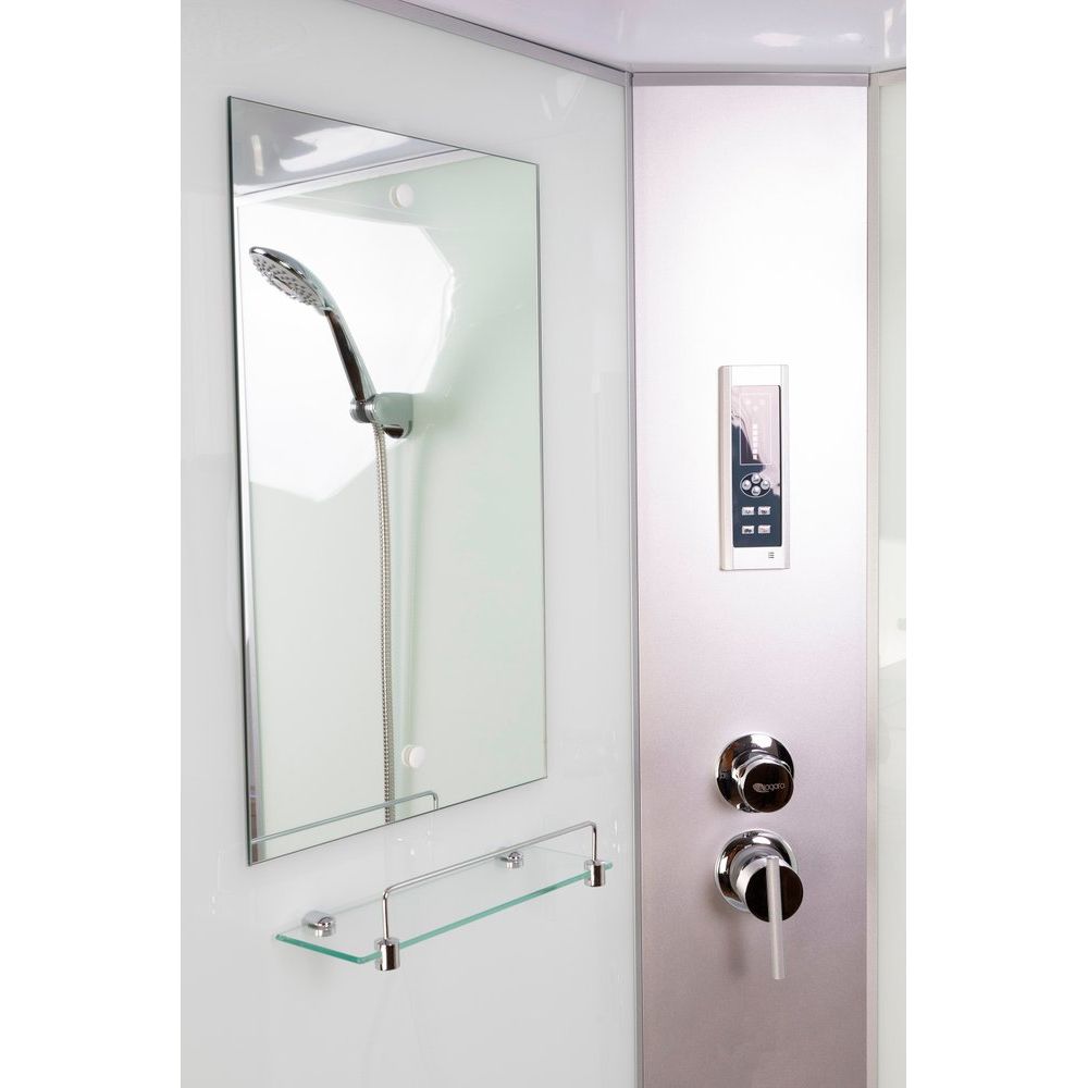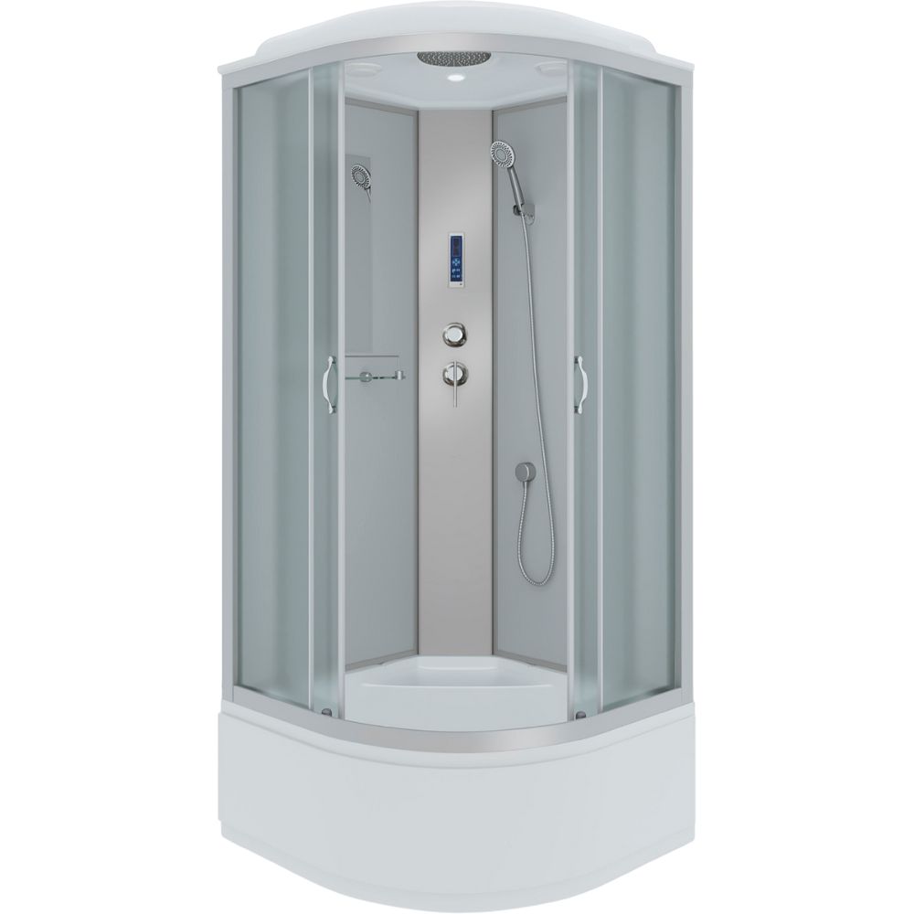 Душевая кабина Niagara Classic NG-2309-14P имеет размеры 100x100 см, обеспечивая широкий входной проем в 50 см. Удобное раздвижное открытие дверей из рельефного матового стекла способствует сохранению личного пространства. Верхний душ интегрирован в крышу кабины, а верхнее освещение дополняет комфорт водной процедуры. Электронное управление осуществляется через пульт, позволяя контролировать включение вентиляции и встроенного радио. Поддон, выполненный из прочного АБС-пластика, обладает глубиной 28 см и оснащен антискользящим покрытием, что делает использование кабины максимально безопасным. В комплект поставки входят сифон, экран и полный душевой гарнитур.
