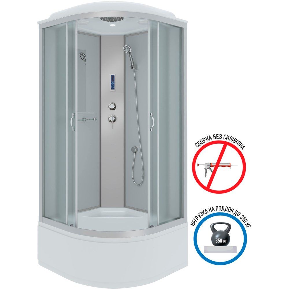 - Максимальная безопасность: антискользящее покрытие поддона и матовое рельефное стекло дверей.