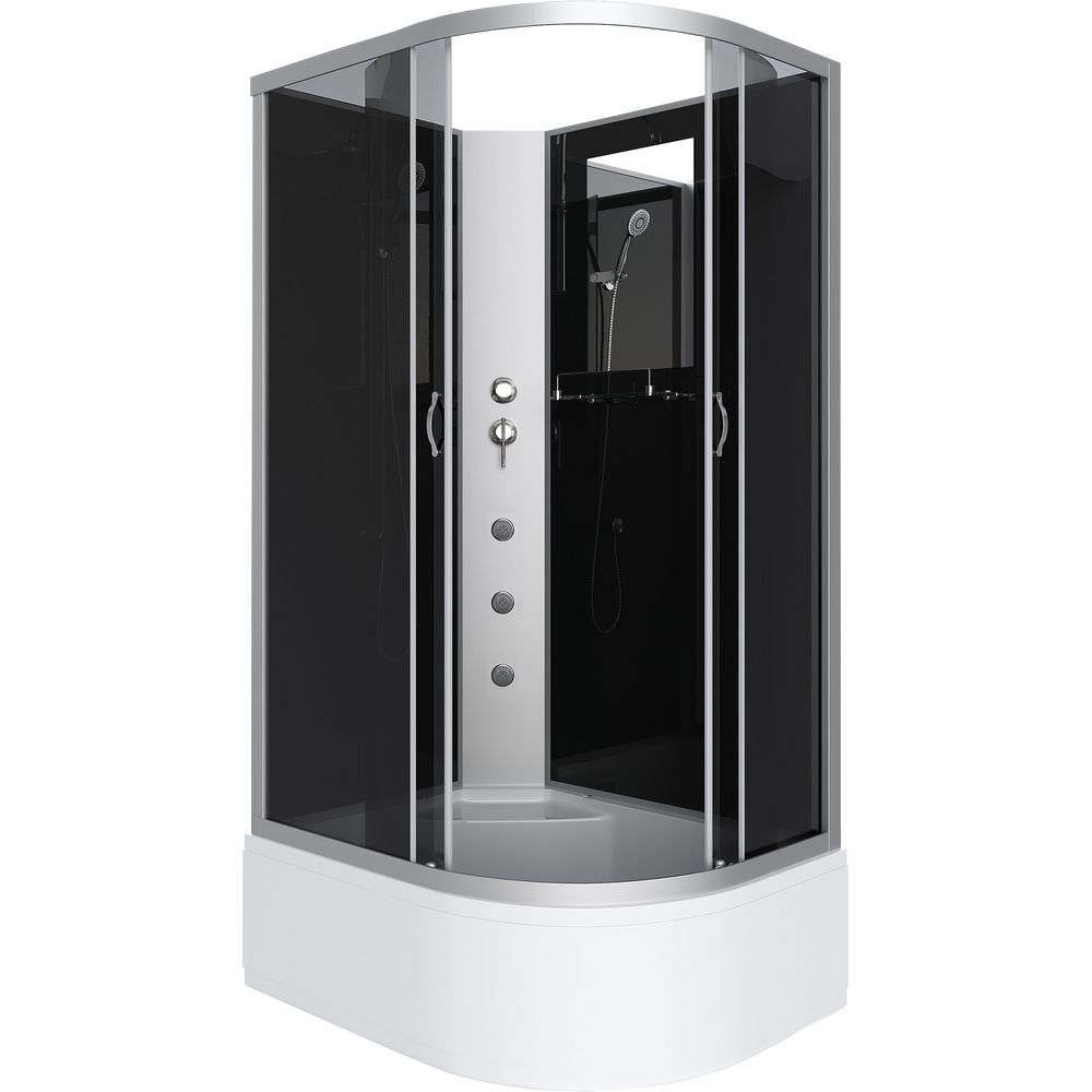 Эта душевая кабина имеет размеры 120х80 см, что делает её подходящей для большинства ванных комнат. Двери с тонированным полотном открываются с помощью раздвижной системы, обеспечивая удобный вход шириной 48 см. Дверцы изготовлены из прочного стекла, а поддон выполнен из АБС-пластика, который славится своей устойчивостью и прочностью. Глубина поддона составляет 28 см, и он дополнен антискользящим покрытием для вашей безопасности. Высота ножек поддона регулируется, что позволяет легко компенсировать неровности пола.