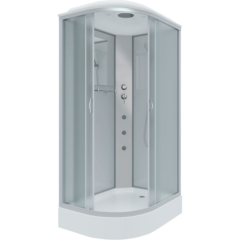 Габариты душевой кабины составляют 120х80 см, что идеально подходит для большинства ванных комнат. Крыша кабины оборудована верхним душем, а внутри предусмотрено зеркало и полка для нужных аксессуаров. Раздвижные матовые стеклянные двери открывают вход шириной 48 см. Кабина также включает в себя вентиляцию и оснащена прочным поддоном из АБС-пластика с глубиной 5 см и антискользящим покрытием. Высота ножек может быть отрегулирована для компенсации неровностей пола. В комплекте уже идут все необходимые элементы: сифон, экран и душевой гарнитур.