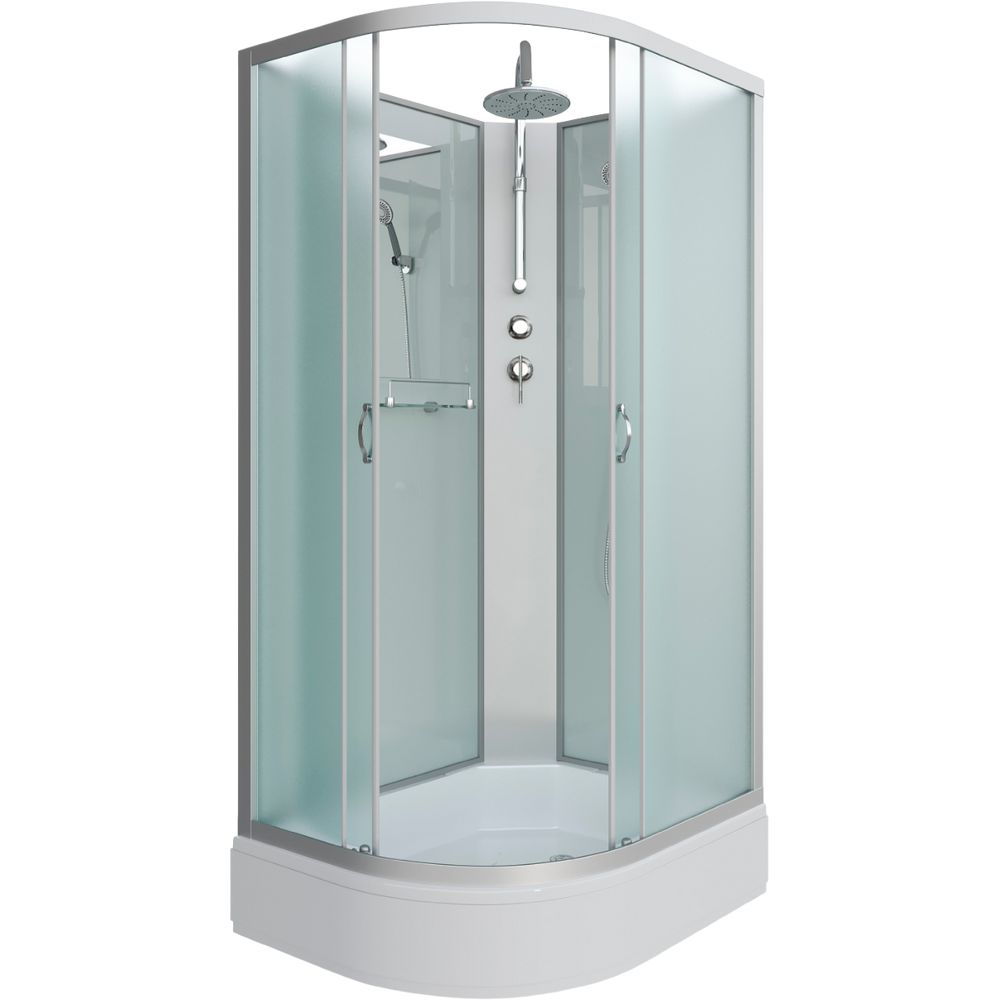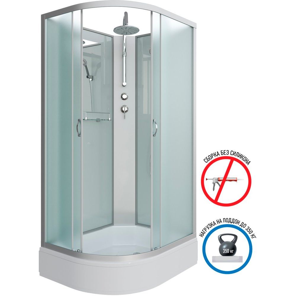 Душевая кабина имеет размеры 120x90 см, что позволяет её удобно разместить в ванной комнате. Стеклянные матовые двери с раздвижной системой открываются легко и практически бесшумно, обеспечивая ширину входа в 50 см. Поддон кабины изготовлен из прочного и лёгкого АБС-пластика, обладая глубиной 13 см с антискользящим покрытием для безопасного использования. Комплектуется сифоном, экраном и душевым гарнитуром, что облегчает процесс установки. Регулируемая высота ножек помогает точно адаптировать кабину к особенностям пола.