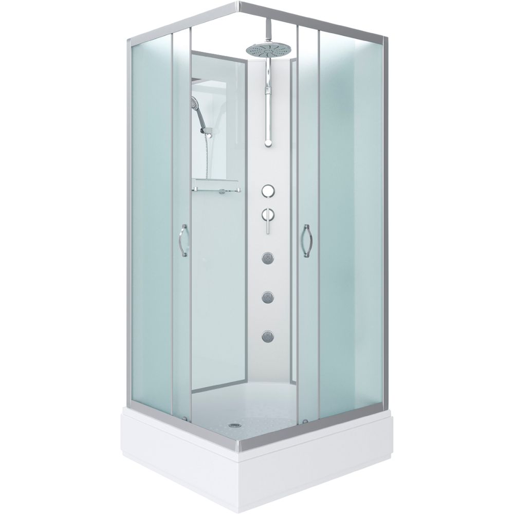 Двери выполнены из матового стекла с раздвижной системой и шириной входа 40 см, что обеспечивает удобный доступ. Поддон из АБС-пластика, его глубина составляет 13 см, а антискользящее покрытие заботится о вашей безопасности. Регулируемые ножки помогут установить кабину даже на неровном полу.