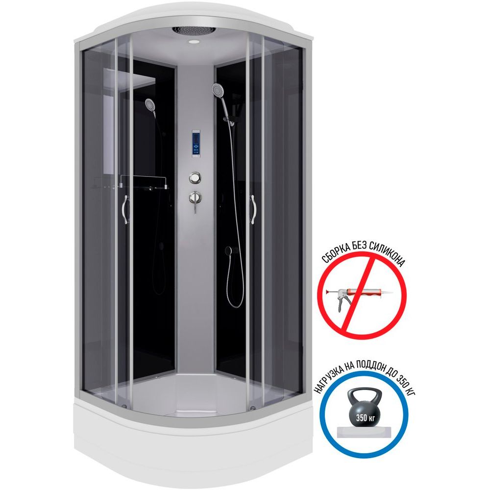 Душевая кабина размером 100х100 см идеально впишется в вашу ванную комнату. Стеклянные дверцы с тонированным полотном обеспечивают приватность и стильный вид. Ширина входа составляет 50 см, что делает кабину удобной для ежедневного использования. Верхний душ, встроенный в крышу, дает чувство дождевого потока, а антискользящее покрытие поддона обеспечивает безопасность. Поддон изготовлен из прочного АБС-пластика, что гарантирует долголетие использования. Кабина оснащена системой вентиляции, полкой и зеркалом для вашего комфорта.