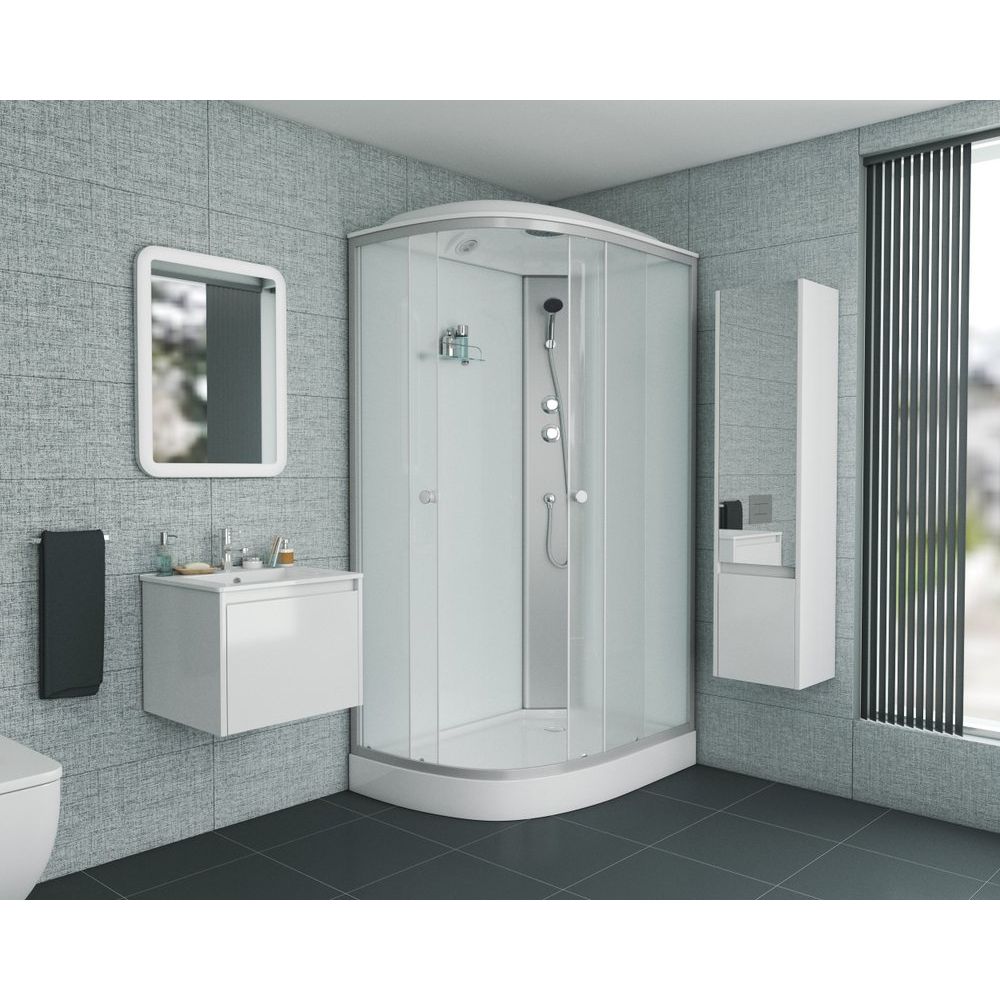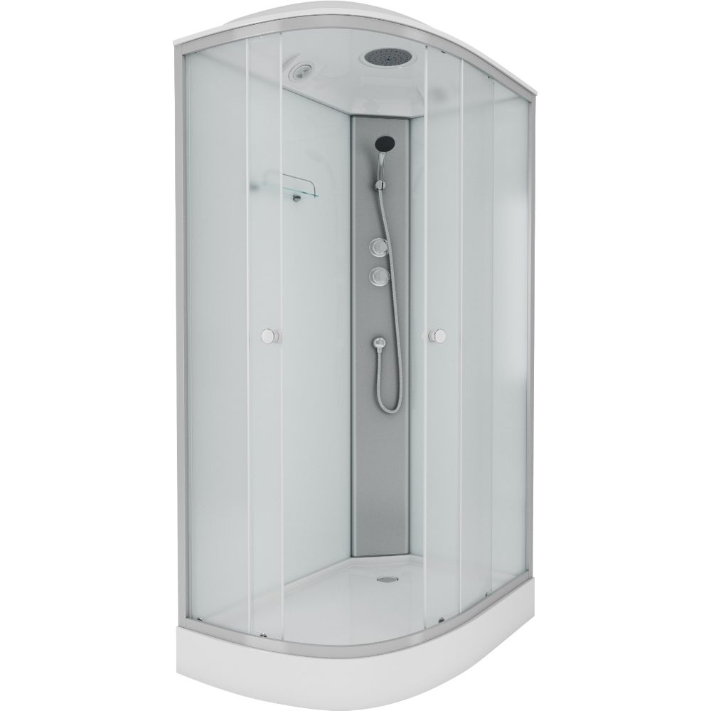 - Функциональность и дизайн: матовые двери и встроенный верхний душ делают кабину стильной и практичной.