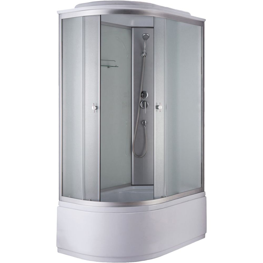 Ширина и глубина кабины составляют 120x80 см, что обеспечивает комфортное пространство для водных процедур. Верхний душ тщательно интегрирован в крышу, дополняя трехрежимную ручную лейку для максимального комфорта. Раздвижная система дверей с матовым полотном и дверцы из прочного стекла гарантируют долговечность и приватность. Площадь входа составляет 47 см. Кабина оснащена встроенным сиденьем и полкой, а поддон обладает антискользящим покрытием и глубиной 28 см. Изготовленный из акрила, поддон также включает сифон и экран, предоставляя полную готовность к установке.