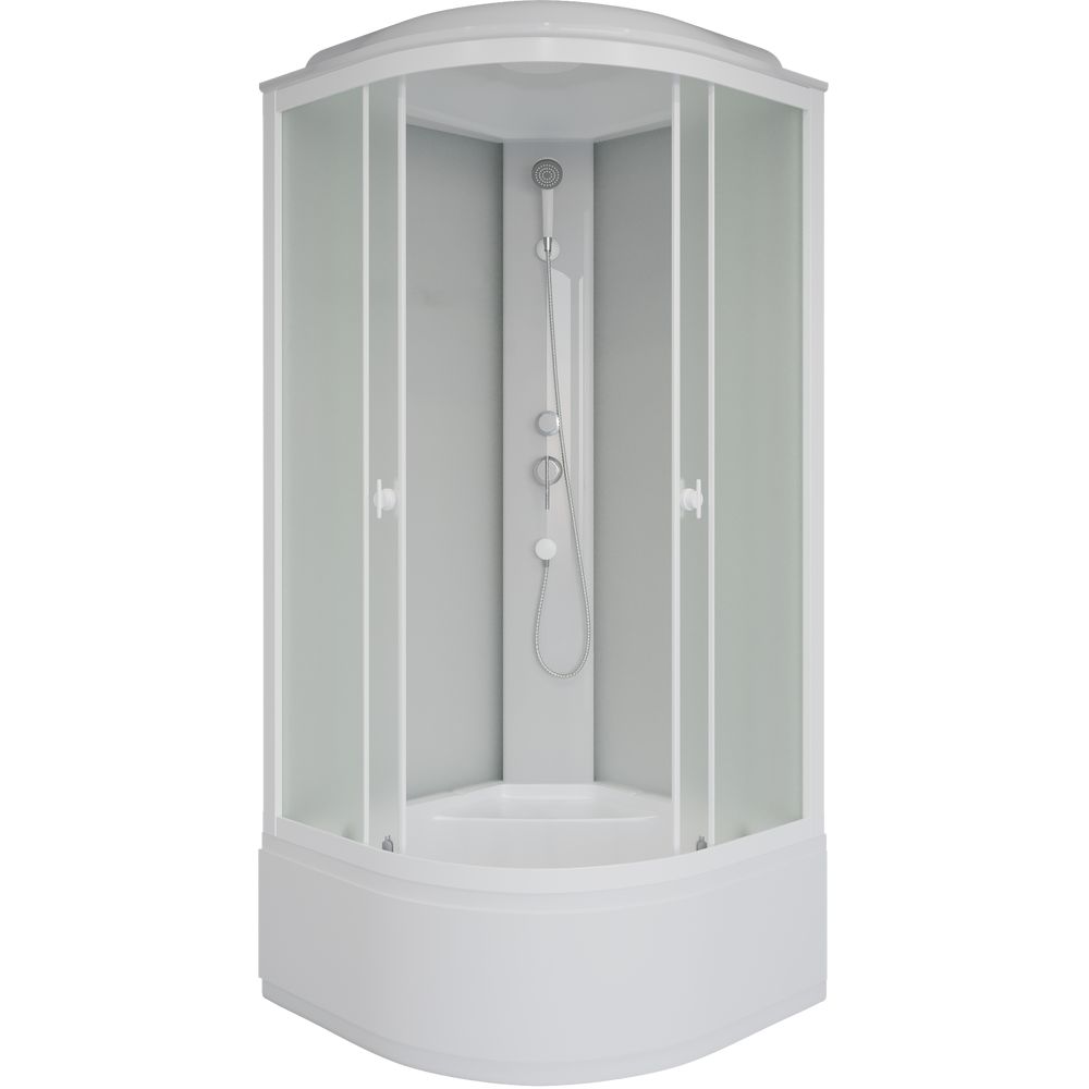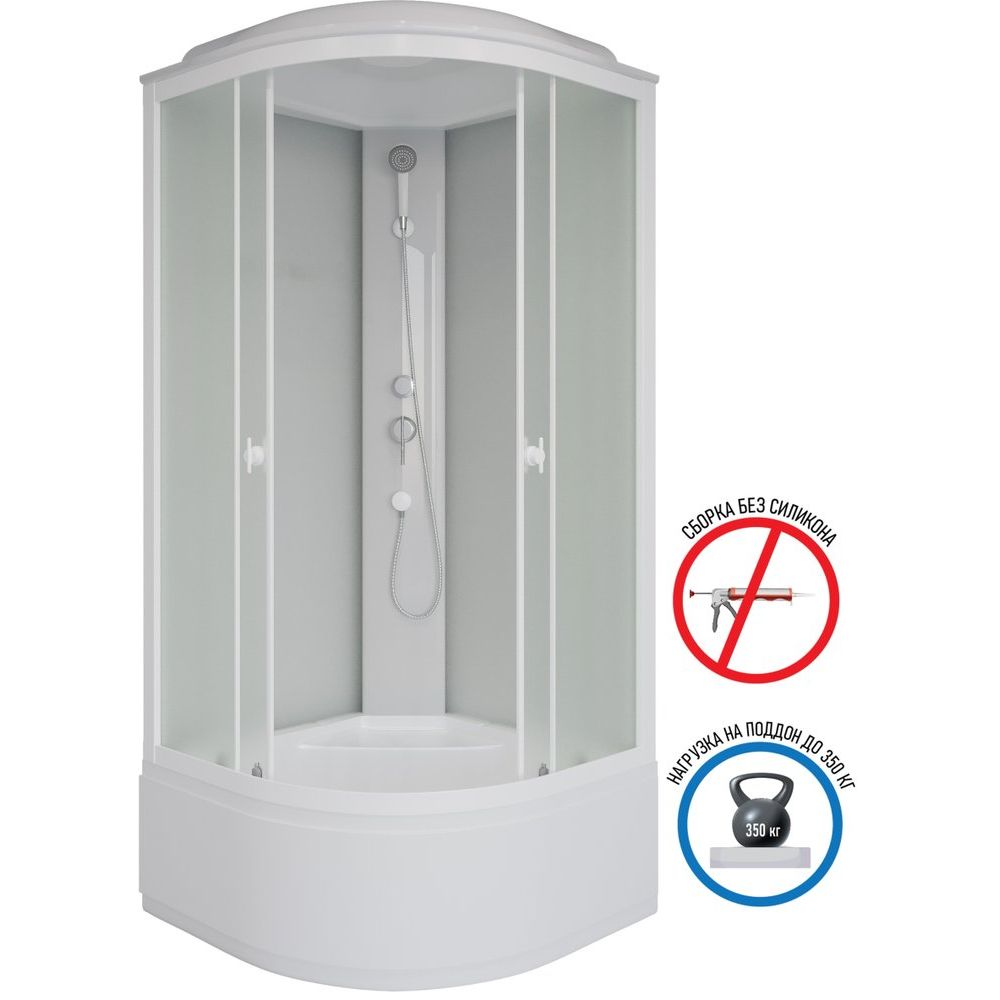 Душевая кабина имеет габариты 90x90 см, благодаря чему она легко найдет себе место даже в небольших ванных комнатах. Раздвижные двери выполнены из матового стекла, создающего особую атмосферу уединенности. Ширина входа составляет 44 см, что подходит для людей с любой комплекцией. Поддон глубиной 27 см выполнен из акрила и оснащен антискользящим покрытием, обеспечивая безопасность при использовании. В комплект изделия входят сифон, экран и душевой гарнитур, что делает продукцию полностью готовой к установке и использованию.