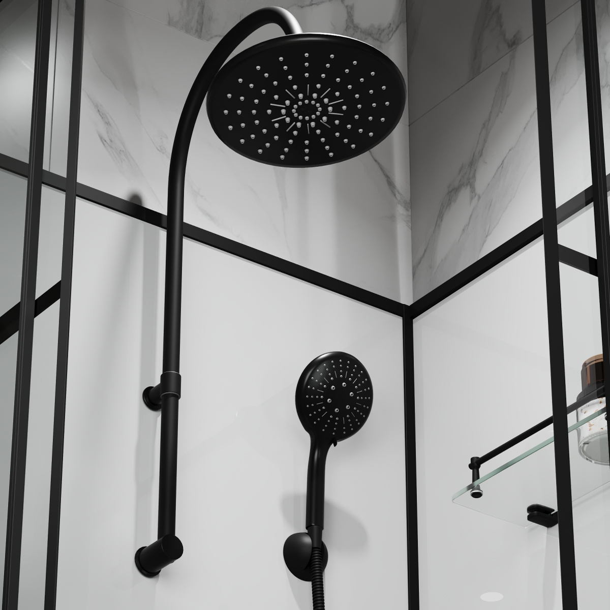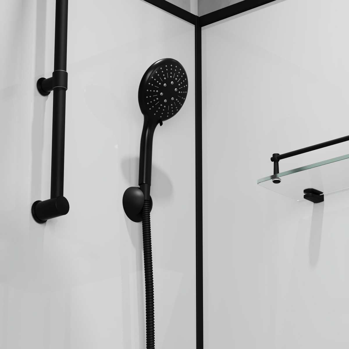 Душевая кабина Niagara Standart ST100/15QL/KL/BKT имеет квадратную угловую форму и минималистичный дизайн с черным матовым профилем. Важные характеристики включают в себя: высота поддона — 15 см с глубиной 5 см, материал — акрил. Раздвижные двери обеспечивают удобный доступ, а две полочки упрощают организацию пространства внутри кабины. В комплект также входят латунный смеситель с двумя режимами и керамическим картриджем, ручная лейка и сифоны.