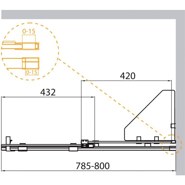 - Габариты перегородки составляют 80x195 см, что подходит для большинства стандартных душевых кабин.