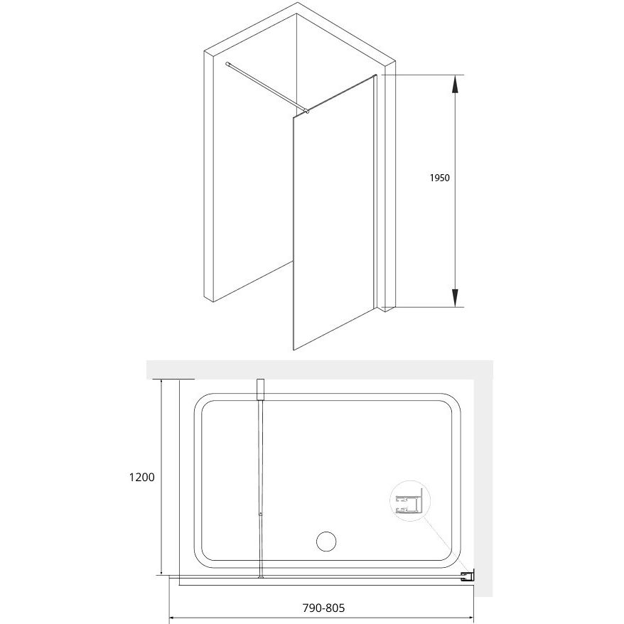 Душевая перегородка имеет размеры 80x195 см, что соответствует стандарту комфортного использования. Благодаря универсальной ориентации перегородка подходит для различных типов ванных комнат. Прозрачное полотно из стекла толщиной 6 мм обеспечивает безопасность и долговечность, а его покрытие «антикапля» добавляет удобства при очистке. Глянцевый алюминиевый профиль не только стильный, но и устойчивый к внешнему воздействию.