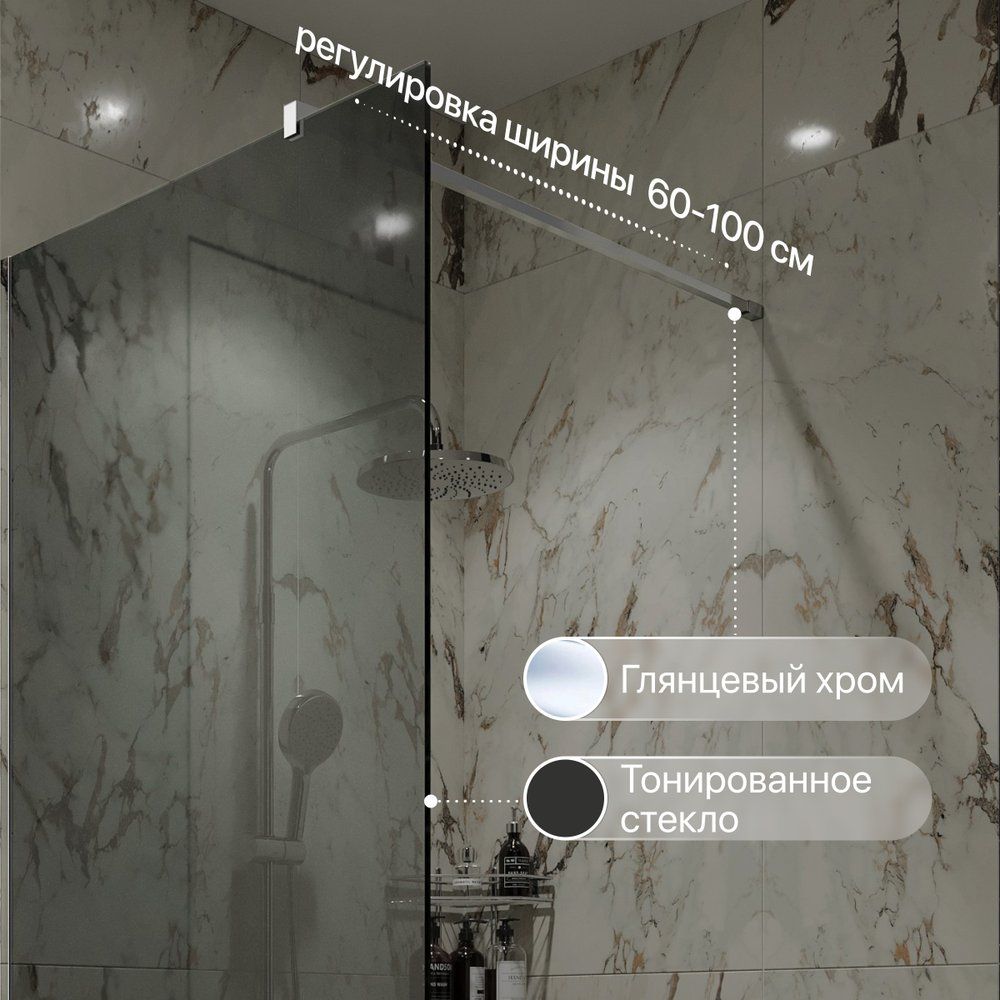 Напольный монтаж этой конструкции обеспечивает легкость установки и стабильность в эксплуатации. Регулируемый стабилизатор, позволяющий изменять ширину конструкции от 60 до 100 см, дает возможность адаптировать перегородку практически под любое пространство. Высококачественное закаленное стекло, которое безопасно и в 8 раз прочнее обычного, гарантирует долговечность и устойчивость к повреждениям. Глянцевая поверхность хромированного профиля сохраняет безупречный вид на протяжении долгого времени, а алюминиевый материал профиля отличен легкостью и устойчивостью к коррозии.