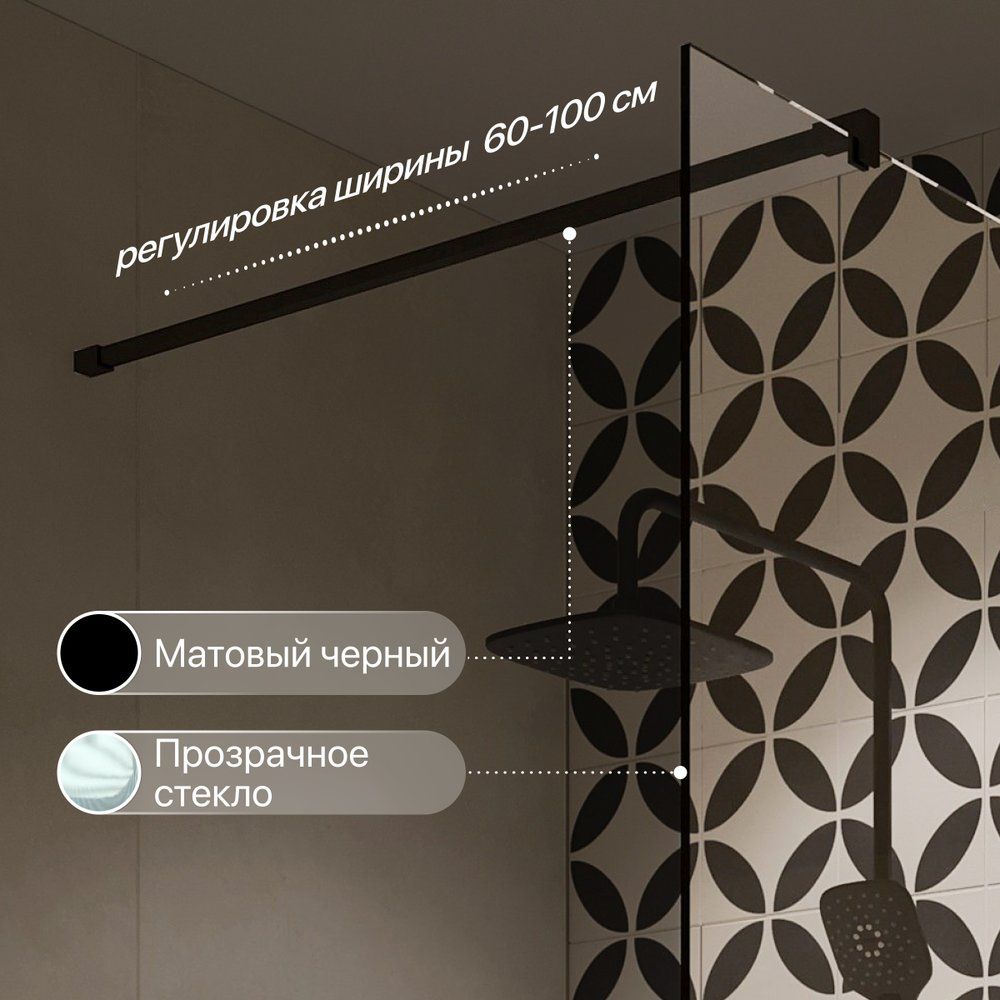 Позвольте вашему интерьеру заиграть новыми красками с коллекцией Берген. Душевая перегородка STWORKI выделяется травмобезопасным закаленным стеклом, прочность которого в 8 раз превышает прочность обычного. Это гарантирует не только стиль, но и безопасность. Стабилизатор позволяет регулировать ширину конструкции от 60 до 100 см, что делает этот элемент функциональным и адаптивным до мельчайших деталей. Матовый черный алюминиевый профиль добавляет современности, не перегружая пространство.Краткая информация об изделии