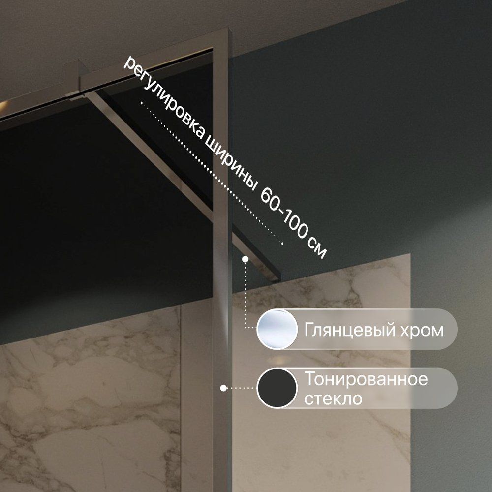 Душевая перегородка имеет размеры 120 см в ширину и 220 см в высоту, что делает её идеальной для установки в любом пространстве. Благодаря универсальной ориентации, она легко вписывается в любую ванную комнату. Полотно толщиной 8 мм выполнено из тонированного закаленного стекла, что повышает его прочность и безопасность, а гладкий алюминиевый профиль обеспечивает безупречный внешний вид и надёжность.