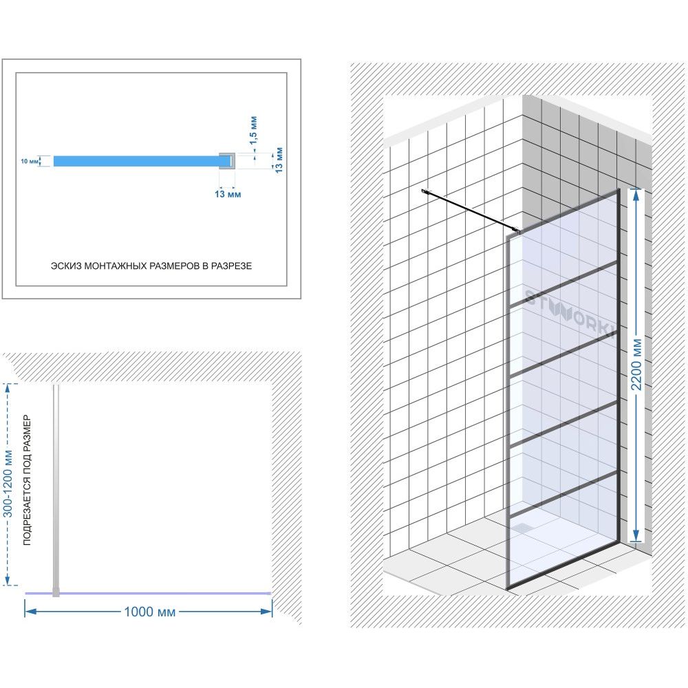 Данная душевая перегородка имеет габариты 100x220 см, что делает её оптимальным выбором для стандартных пространств. Она изготовлена из прочного 10 мм прозрачного полотна, что обеспечивает безопасность и большую устойчивость конструкции. Стильный черный матовый алюминиевый профиль не только защищает от коррозии, но и служит акцентом в декоре. Продукция сопровождается гарантией сроком на 1 год, подтверждающим высокие стандарты качества бренда STWORKI. Производится в России.