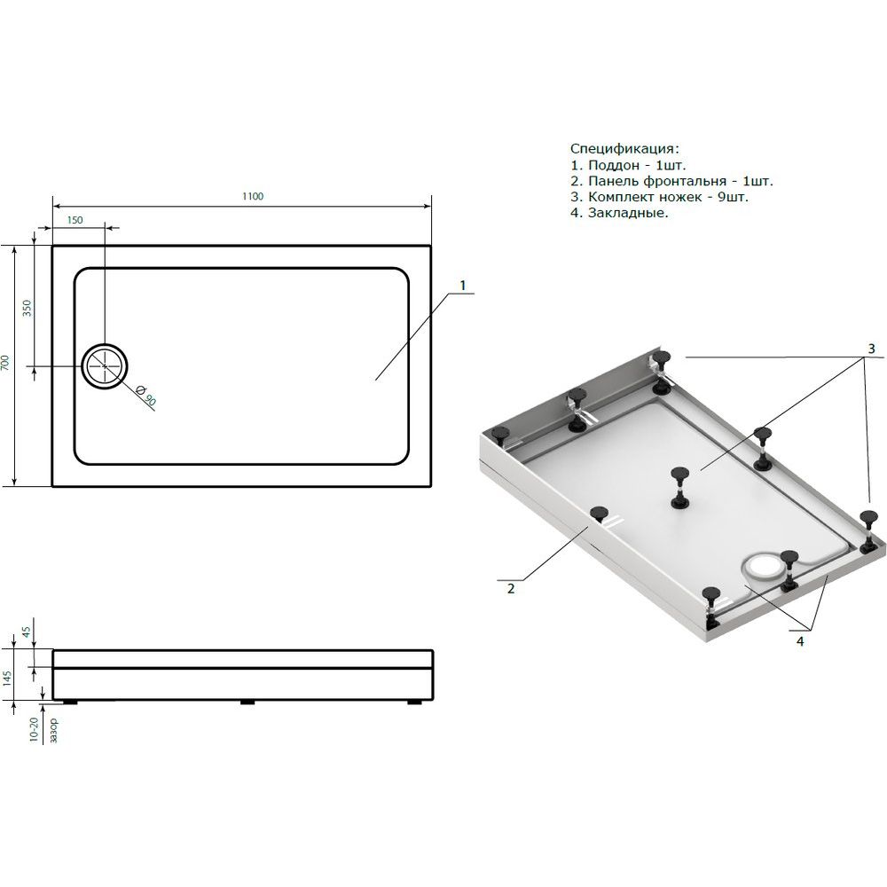 - Универсальная ориентация позволяет установить поддон в любом уголке ванной комнаты.