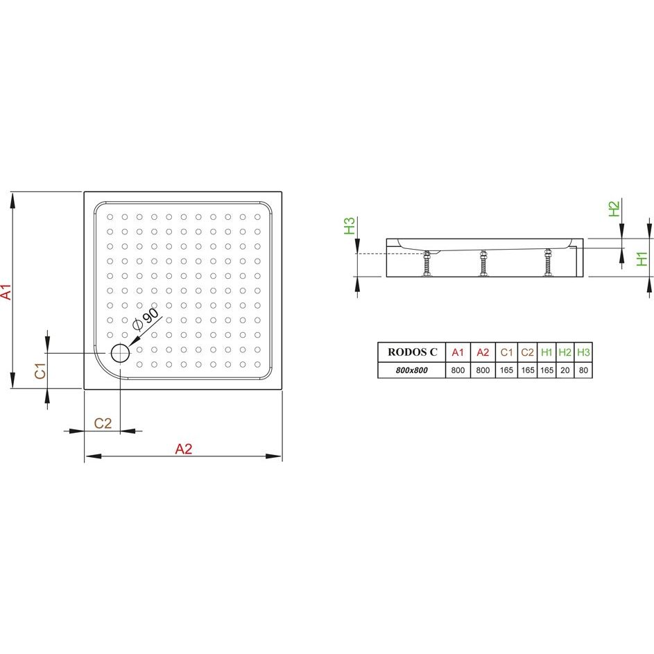 Поддон для душа Radaway Rodos C800 уже укомплектован сифоном, что делает установку проще и удобнее. При планировании вашего санузла обратите внимание на габариты и наличие свободного пространства для монтажа. Регулировка сифона по высоте (до 2.5 см) предоставляет дополнительные возможности для оптимизации установки.