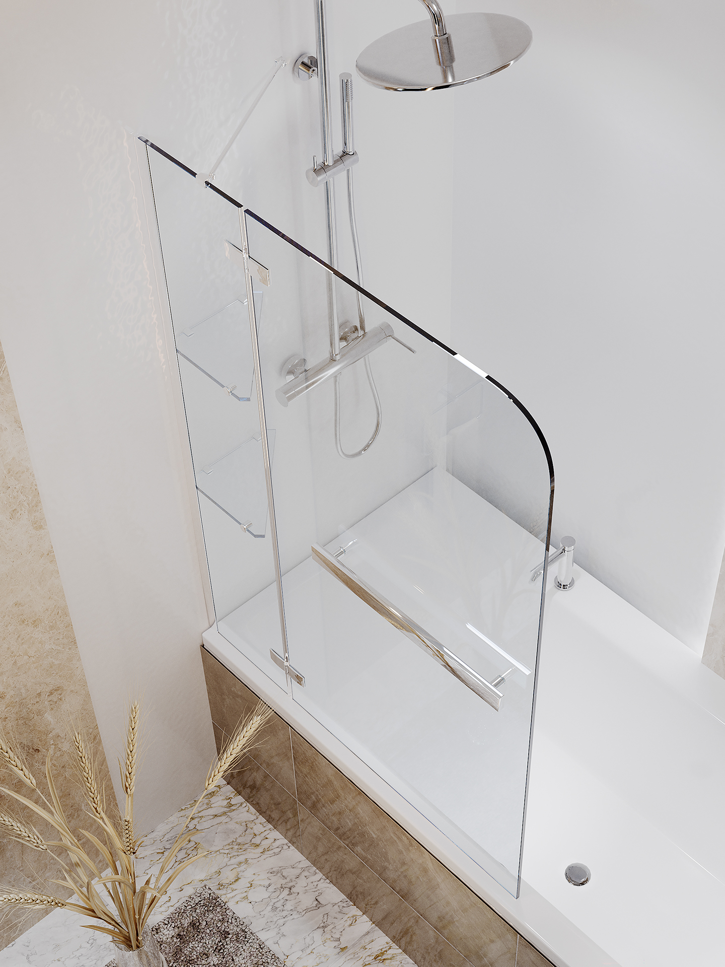 Weltwasser 100D2AK-100 – шторка на ванну, которая пользуется популярностью среди потребителей. Отличительной особенностью изделия является его универсальность, то есть устанавливаться шторка может и справа, и слева. Выполнена конструкция из прочного стекла, толщина которого составляет 6 миллиметров. Ему не страшны колебания температур, случайные механические воздействия. Шторку можно поворачивать на девяносто градусов. Конструкция оснащена петлями из нержавеющей стали, полотенцесушителем, Хромированным профилем, регулируемым в диапазоне пяти миллиметров. В комплекте так же идут две стеклянные полочки, которые помогут разместить все удобное под рукой, пока Вы будете наслаждаться душем.
