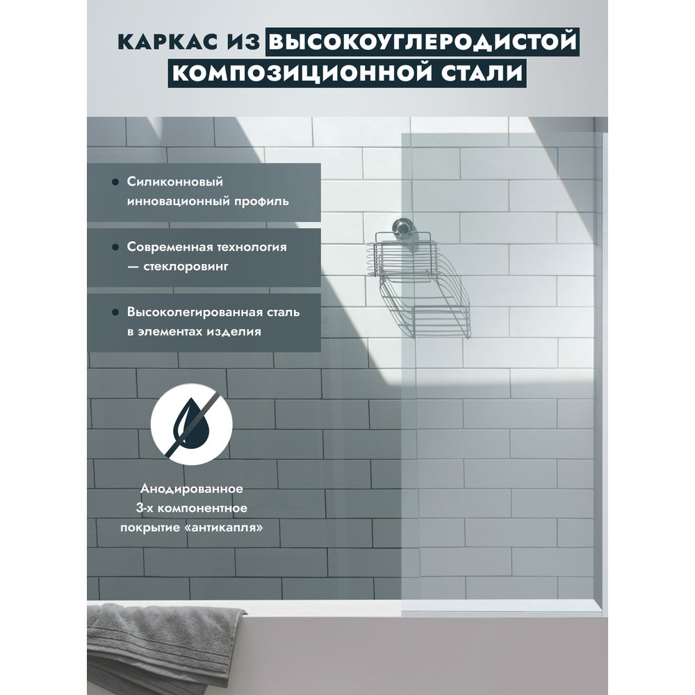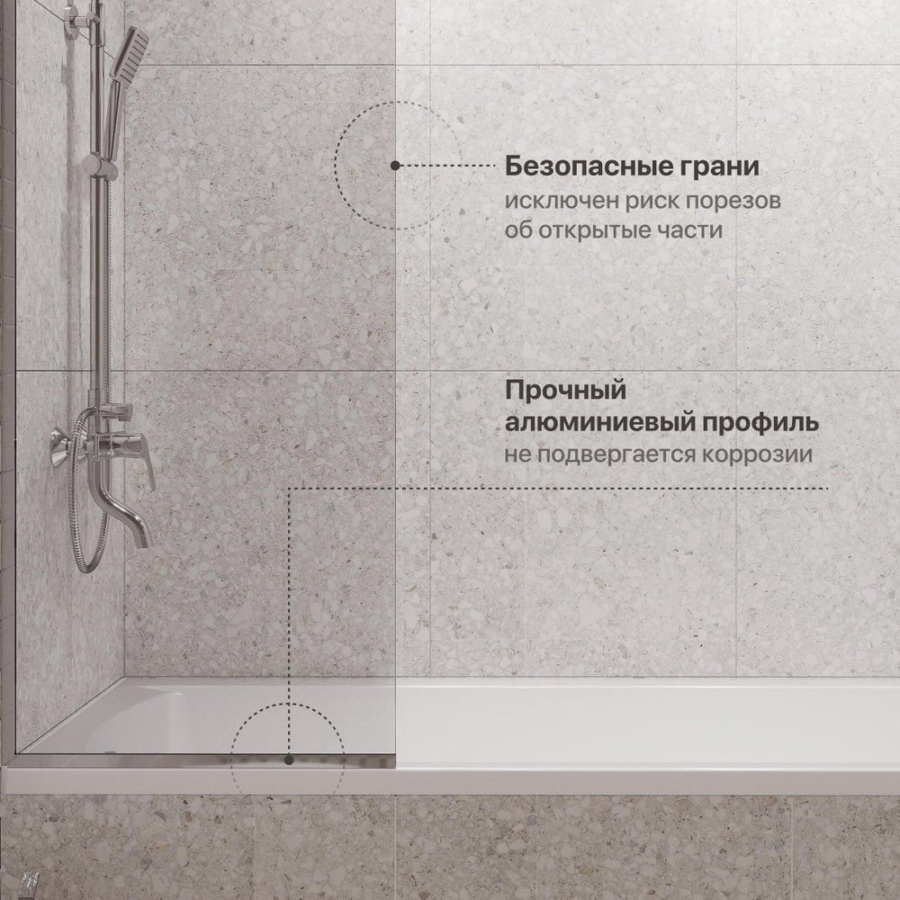 - Универсальная шторка, подходит для установки с любой стороны ванны.