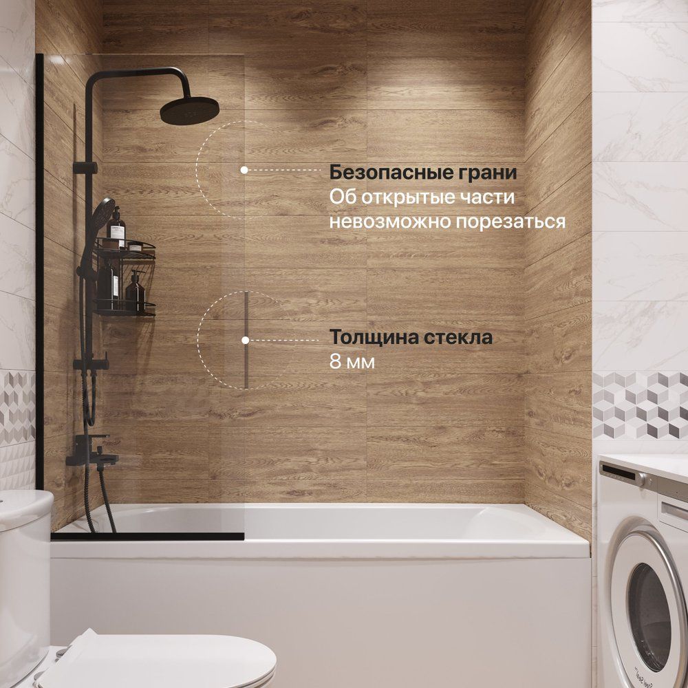 Шторка на ванну имеет размеры 70x140 см, что идеально подходит для стандартных ванн. Вся конструкция неподвижная, что обеспечивает ее стабильность и надежность при использовании. Полотно из прозрачного стекла толщиной 8 мм не только придает изысканность, но и обладает высокой прочностью. Используется премиум-класса закаленное стекло, что служит дополнительной гарантией безопасности. Алюминиевый профиль обеспечивает легкость конструкции без потери прочности.
