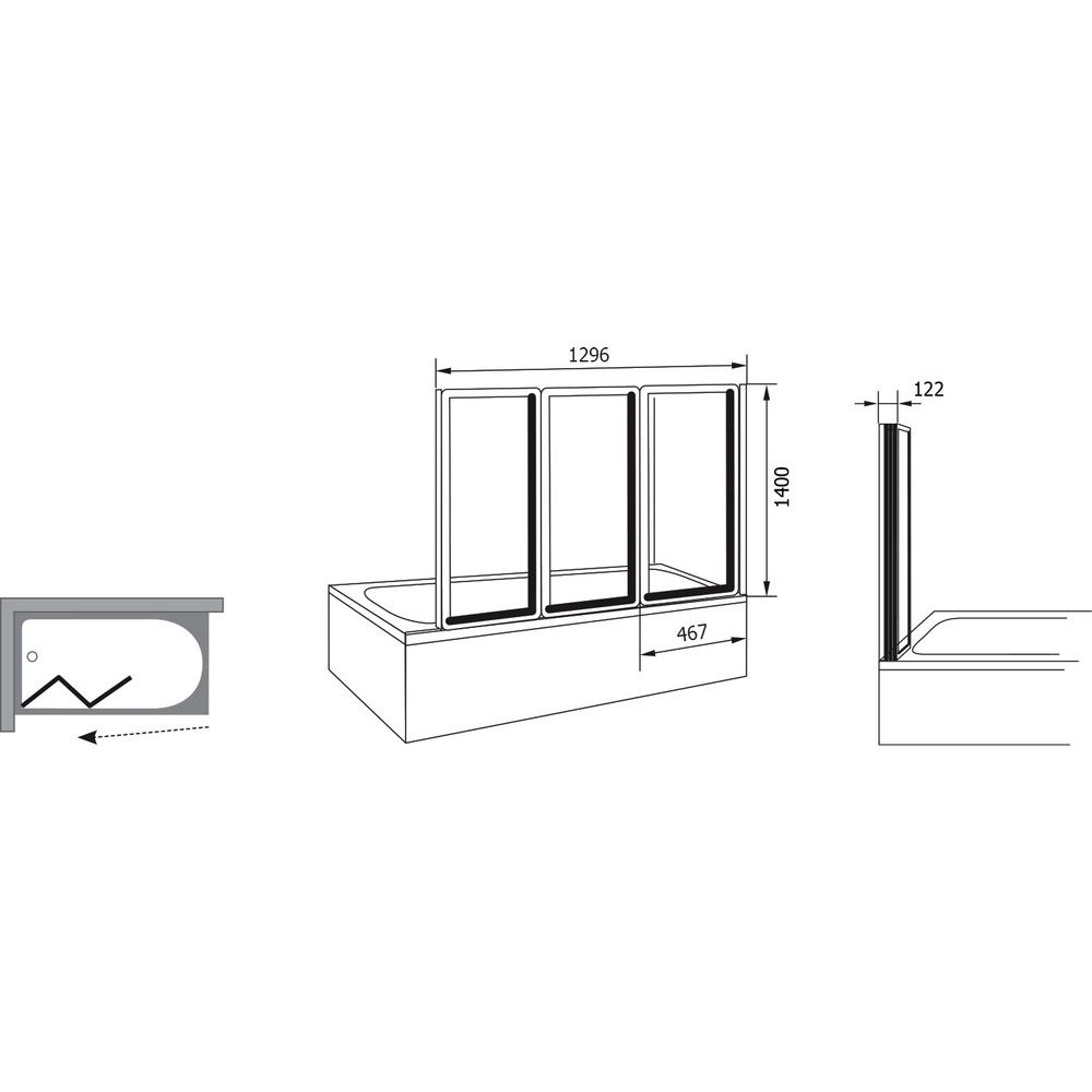 Габариты данного изделия составляют 129,6х140 см, что обеспечивает широкий вход размером 125 см. Інновационная складная система с тремя подвижными частями позволит вам адаптировать пространство под ваши нужды. Благородный алюминиевый профиль надежно защищен от воздействия влаги. Полистироловое полотно отличается не только прочностью, но и малыми весом, не создающим нагрузку на механизмы. Гарантийный срок на изделие от производителя составляет 2 года, что свидетельствует о его надёжности и долговечности.