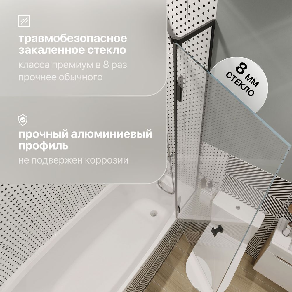 Ширина шторки составляет 90 см, а высота — 140 см, что обеспечивает надежную защиту от брызг. Прозрачная распашная система дверей добавляет комфорт в использовании и экономит пространство. С возможностью универсальной ориентации, она легко впишется в вашу ванную, независимо от инженерных особенностей помещения. Толщина стеклянного полотна — 8 мм, что гарантирует прочность и долговечность, в то время как алюминиевый профиль обеспечивает устойчивость конструкции. На все изделия распространяется гарантия сроком на 1 год, производятся в России.
