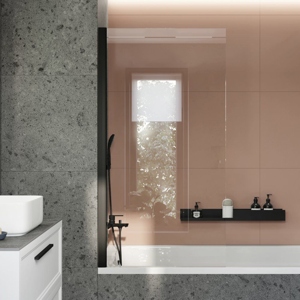Габариты составляют 50 см в ширину и 150 см в высоту, что делает эту шторку отличным выбором для стандартных ванн. Все части конструкции неподвижны, что обеспечивает устойчивость и безопасность в использовании. Прозрачное полотно толщиной 8 мм отлично пропускает свет, создавая визуально просторное пространство, а алюминиевый профиль обеспечивает долговечность и устойчивость к коррозии.