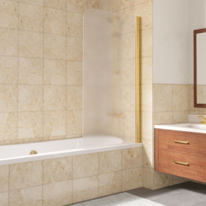 Шторка на ванну Vegas Glass EV Lux 75 09 10 R — это сочетание изысканного стиля и надежной функциональности для вашей ванной комнаты. Эта модель с профилем из золота и матовым стеклом придаёт элегантность и современность вашему интерьеру, обеспечивая при этом полноценное удобство в использовании. Сатинированная поверхность стекла сохраняет личное пространство и минимизирует влагу на полу ванной комнаты, что немаловажно для комфортного принятия душа.