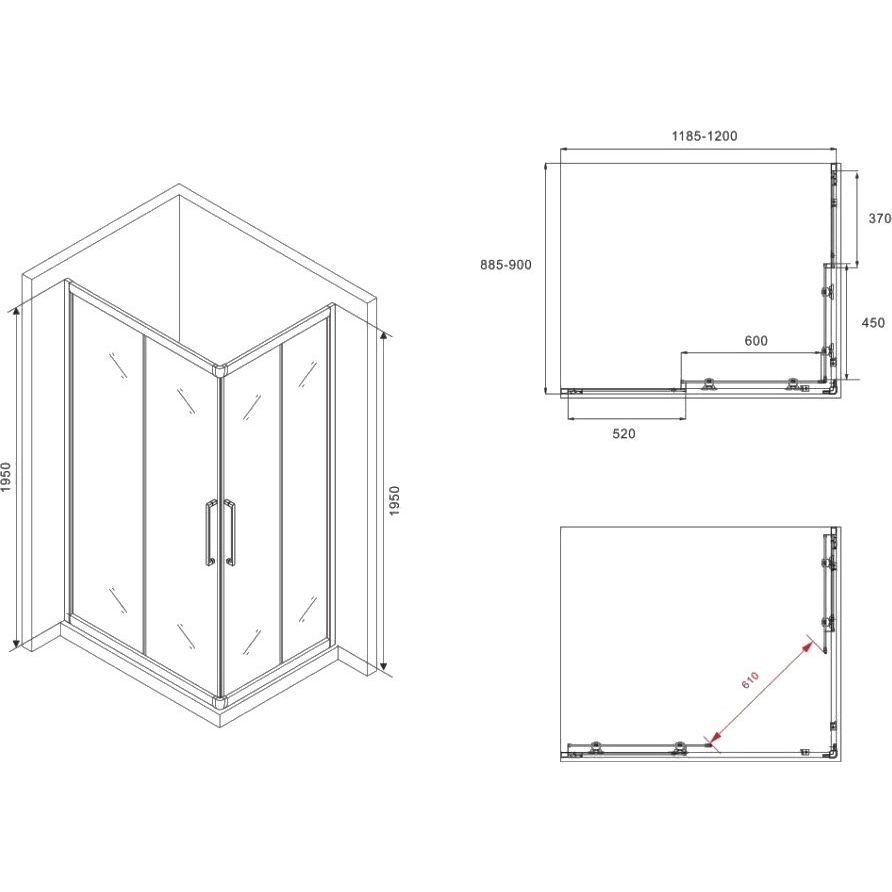 Ширина и глубина душевого уголка составляет 120x90 см, что обеспечивает комфортное пространство для принятия душа. Он оснащен раздвижной системой дверей с прозрачным стеклом. Конструкция выполнена с использованием прочного алюминиевого профиля с хромированной, глянцевой отделкой. Установка уголка возможна напрямую на пол или пристенно, создавая множество вариантов для организации пространства. Ширина входа составляет 61 см, а также существует возможность регулировки ширины.