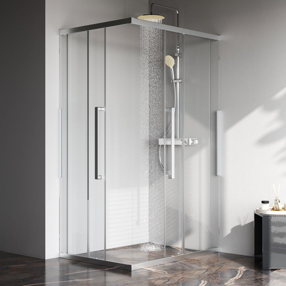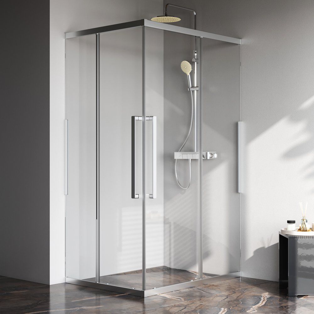 Душевой уголок выполнен с раздвижной системой дверей, что экономит пространство и удобно в использовании. Его прозрачные дверные полотна из закаленного стекла дополняют современный матовый хромированный профиль из алюминия. Габариты составляют 117,8х87,8 см, а ширина входа равна 61,5 см. Отличается универсальной системой монтажа: может быть установлен напольным способом, на поддон или пристенным в угол. Поддон приобретается отдельно. Страна производства — Германия, что подтверждается трехлетней гарантией качества.