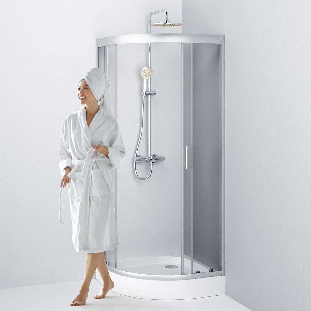 Размеры душевого уголка составляют 80x80 см, что позволяет разместить его в углу ванной комнаты. Возможна установка как на полу, так и на поддоне, приобретаемом отдельно. Конструкция оснащена раздвижной системой дверей с прозрачным полотном, которые крепятся на матовом алюминиевом профиле серебряного цвета. Профиль, высотой в 1900 мм, выполнен из влагостойкого материала, обеспечивающего долговечность и надежное удержание воды. Ширина входа составляет 41 см. На изделие предоставляется гарантия сроком на 3 года, что подтверждает его высокое качество. Сделано в Германии.