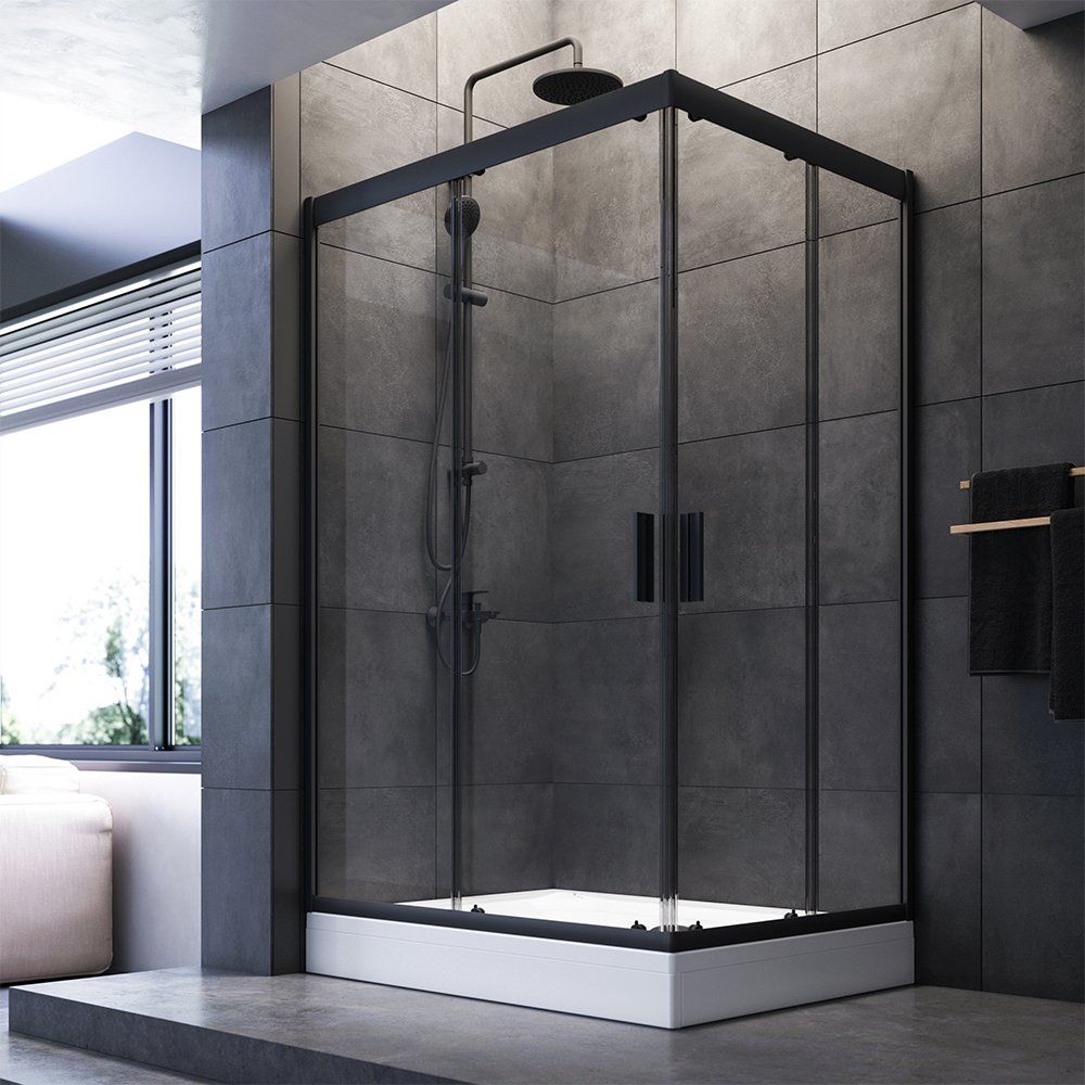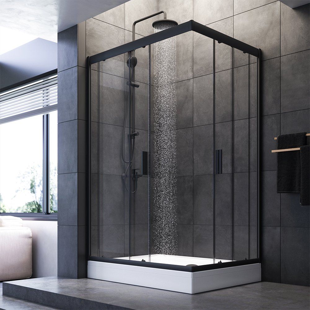 Душевой уголок AM.PM Gem отличается напольным, пристенным в угол или монтажом на поддон, что делает его универсальным для вашего пространства. Ему свойственна ширина 119х89 см, при этом возможна регулировка на несколько сантиметров, что позволяет адаптировать уголок под особенности вашей ванной комнаты. Раздвижные двери из прозрачного полотна придают легкость конструкции, а черный матовый алюминиевый профиль обеспечивает стильный внешний вид.