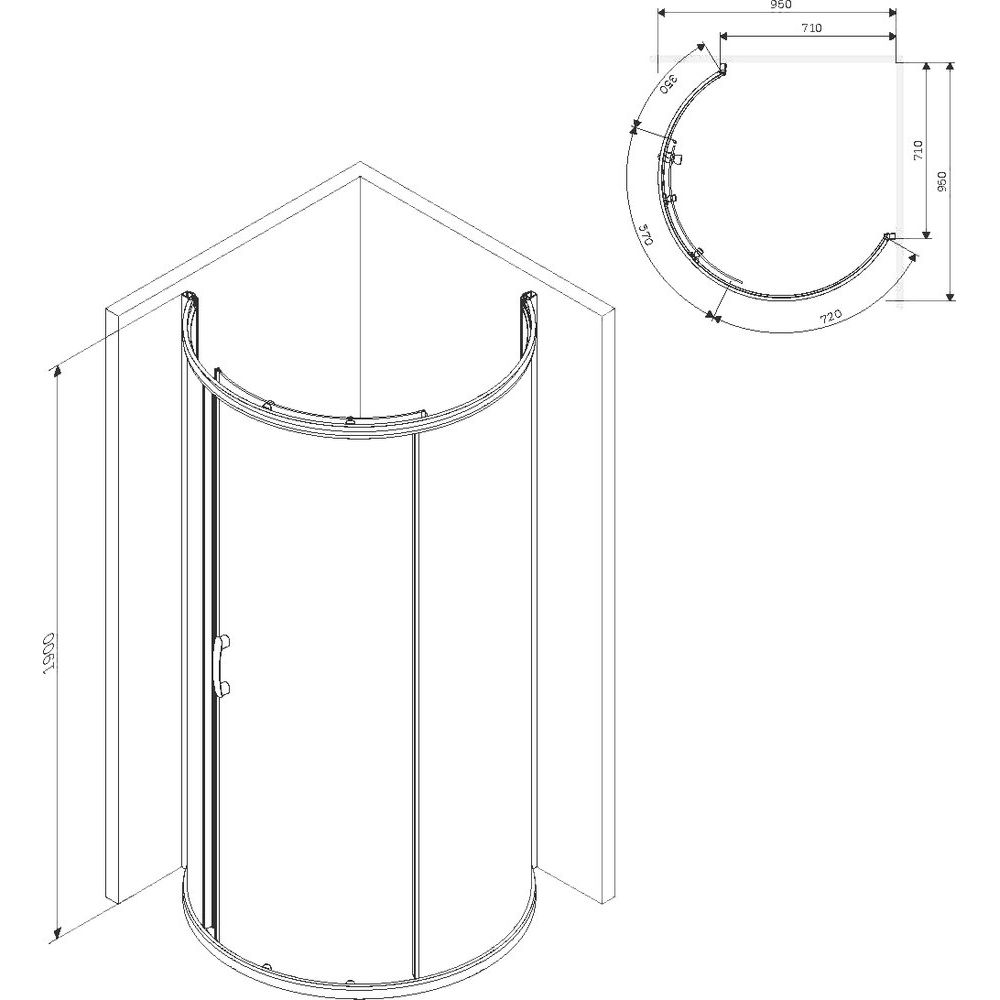 Размеры душевого уголка составляют 95х95 см, что делает его подходящим для большинства современных ванных комнат. Угловая установка позволяет экономить пространство, а вход шириной 57 см делает использование максимально комфортным. Профиль выполнен из прочного алюминия с хромированной отделкой, добавляя изделию долговечности и стиля. Продукт имеет гарантию 3 года, что подтверждает его надежность и качество. Поддон в комплект не входит, его необходимо приобретать отдельно.