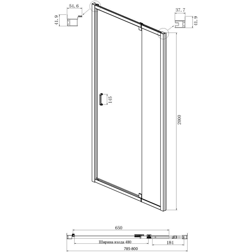 Душевой уголок имеет габариты 80x80 см, что подходит для стандартных ванных комнат. Возможен напольный монтаж, установка на поддон или приставка в угол, благодаря чему вы сможете адаптировать его к своим предпочтениям. Прозрачные двери оснащены распашной системой для удобного доступа, а ширина входа в 48 см обеспечивает комфортное использование. Хромированный профиль из алюминия с глянцевой поверхностью не только прочен, но и эстетичен. Регулируемая ширина и глубина от 78.5 до 80 см делают установку гибкой и простой. Не забывайте, что поддон необходимо приобретать отдельно.