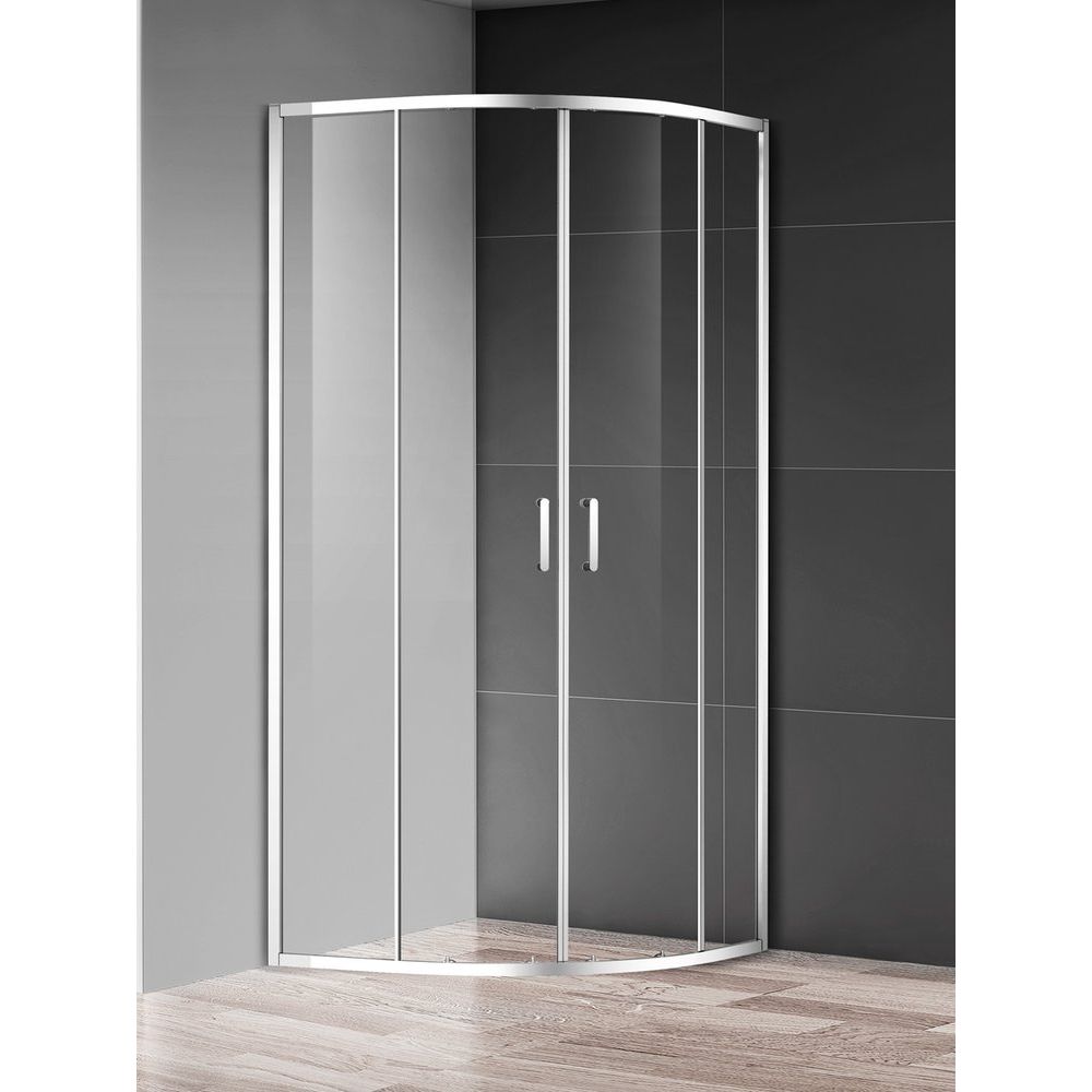 Душевой уголок размером 90х90 см легко справляется с задачей эргономичной организации пространства в ванной комнате. Изделие монтируется пристенно в угол, что экономит полезную площадь. Установка осуществляется непосредственно на пол без использования поддона. Раздвижные двери с прозрачным полотном и прочным алюминиевым профилем, декорированным хромированным покрытием с глянцевой поверхностью, добавляют изысканности. Ширина регулируется на несколько сантиметров, а ширина входа составляет 54 см, обеспечивая комфортное использование.