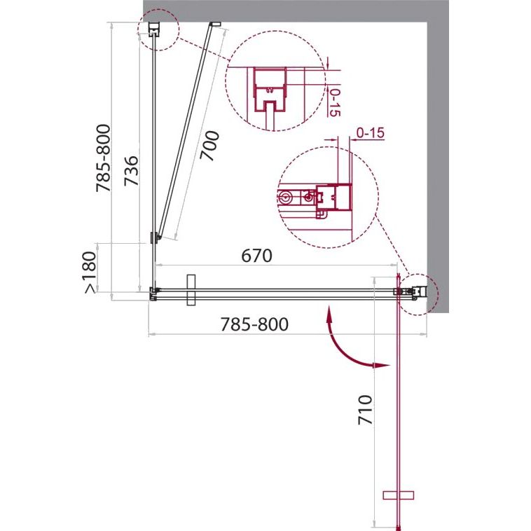 Габаритные размеры душевого уголка составляют 80x80 см, что делает его идеальным решением для большинства ванных комнат. Он предназначен для напольного монтажа или установки на поддон, который приобретается отдельно. Ширина входа составляет 67 см благодаря распашной системе дверей, которые легко можно открывать как внутрь, так и наружу. Это позволяет гибко организовать пространство и гарантирует удобство в использовании.