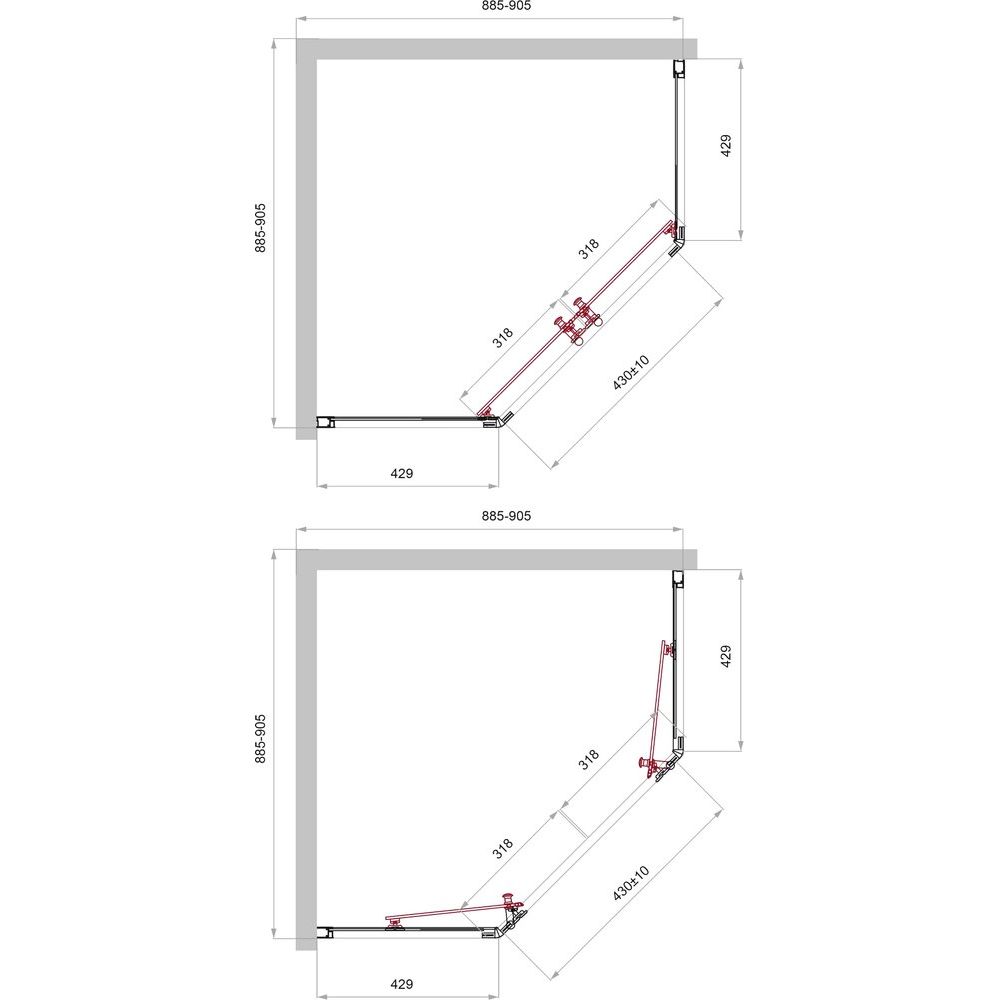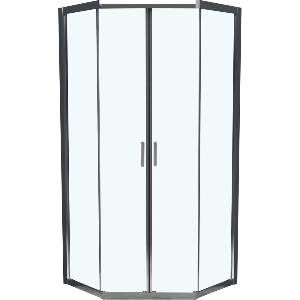 Душевой уголок имеет размеры 90x90 см, что делает его подходящим для большинства стандартных ванных комнат. Раздвижная система дверей с прозрачным полотном придаёт лёгкость конструкции и удобство в использовании. Глянцевая поверхность и хромированный профиль подчёркивают современный стиль. Уголок монтируется в угол ванной комнаты, и ширина входа составляет 59,5 см, что обеспечивает комфортный доступ.