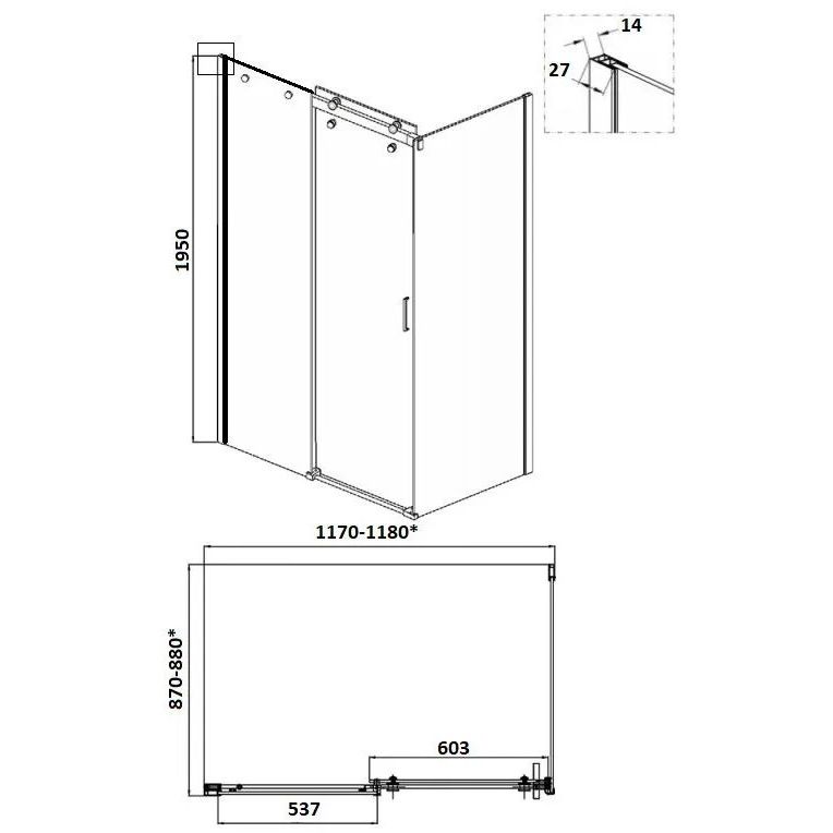 Душевой уголок имеет габариты 118x88 см, обеспечивая комфортное пространство для водных процедур. Модель обладает раздвижной системой дверей с магнитным замком Soft close, что предотвращает самопроизвольное открытие. Черный глянцевый алюминиевый профиль придает конструкции современный и стильный вид. Ширина входа составляет 45 см, обеспечивая удобство при входе. Поддон для установки приобретается отдельно, что дает свободу выбора между несколькими видами монтажа — на пол, на поддон или пристенным образом.